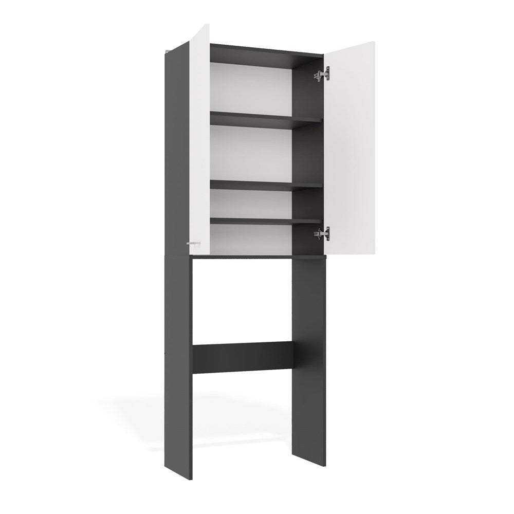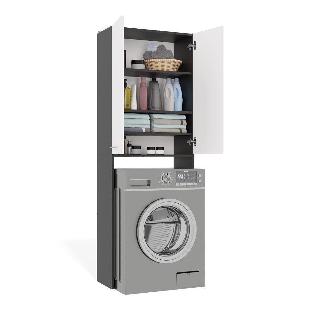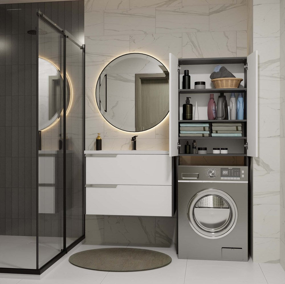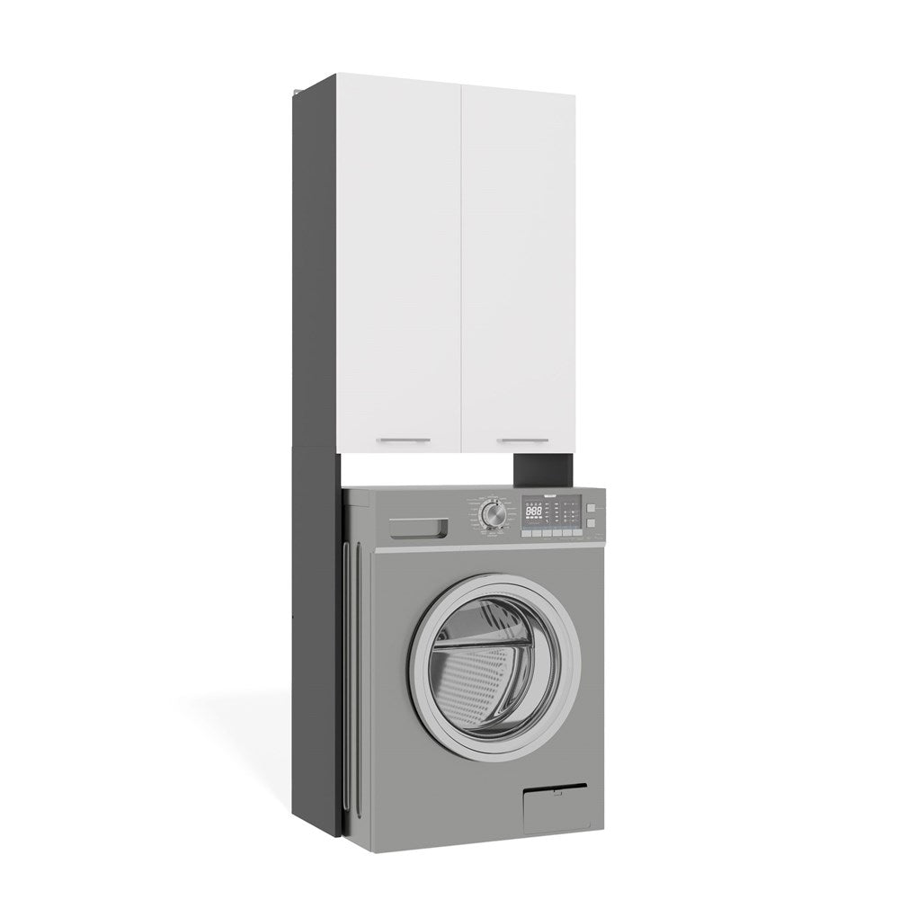 Badkamerkast Pola DD met lange deuren en nis - Opbergruimte boven wasmachine | Antraciet/Mat Wit