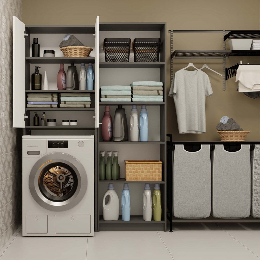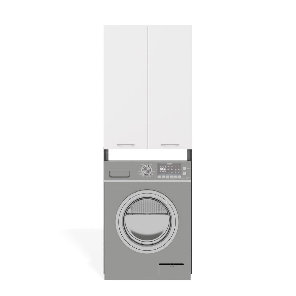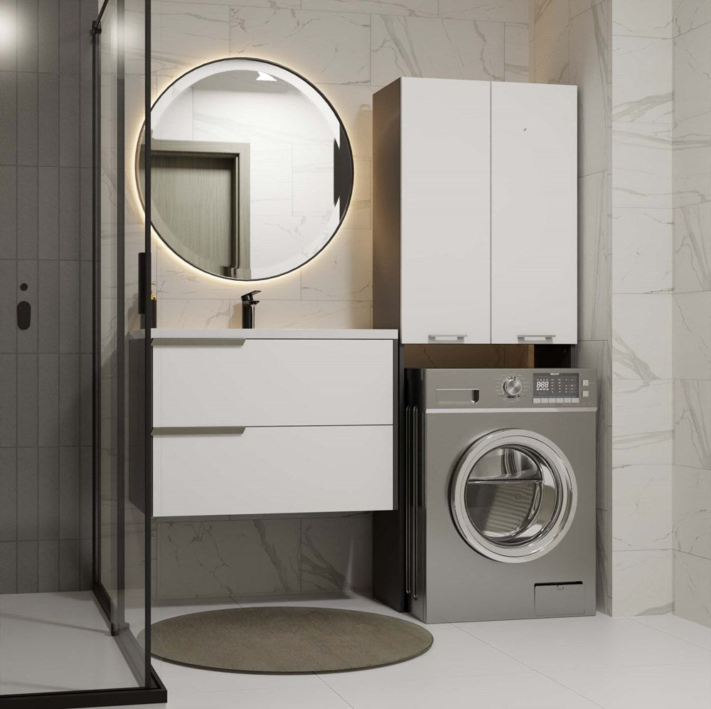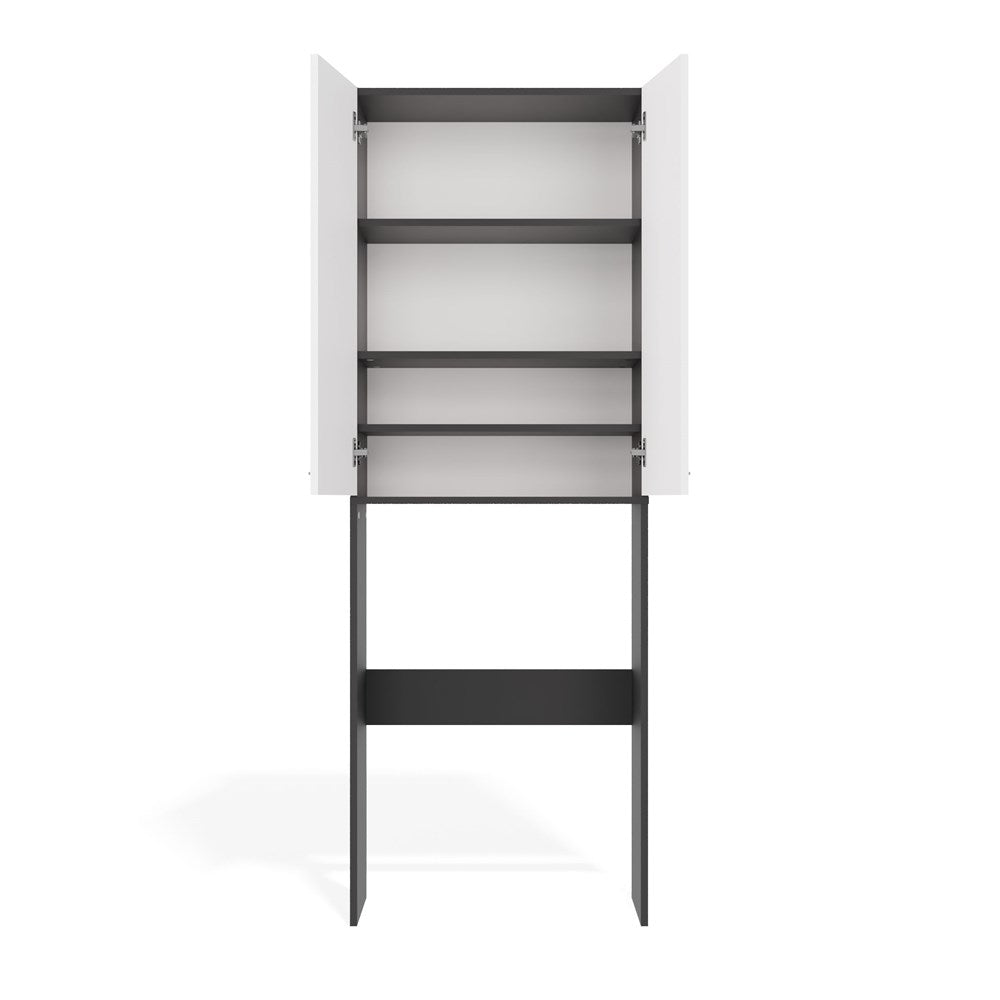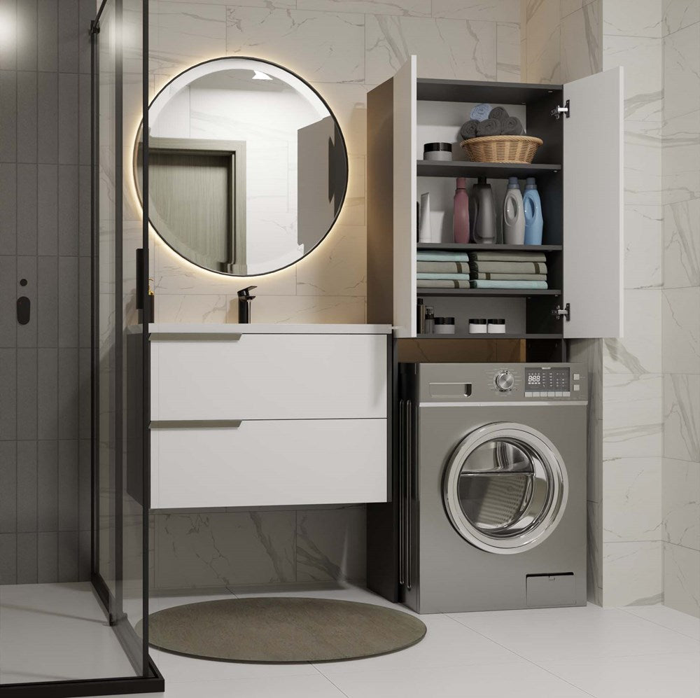 Badkamerkast Pola DD met lange deuren en nis - Opbergruimte boven wasmachine | Antraciet/Mat Wit