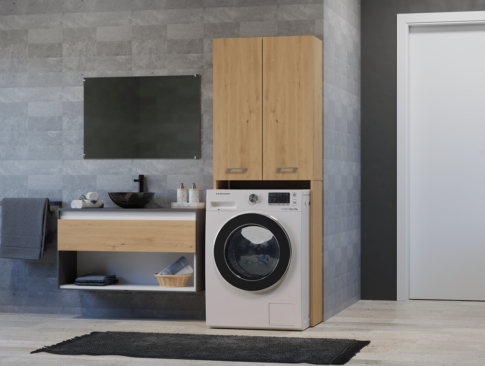 Badkamerkast POLA DD - Opbergruimte boven wasmachine | Artisan eiken | 64x180x30 cm