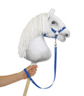 Blå ridpjäs för hobbyhäst tillverkad av vävband