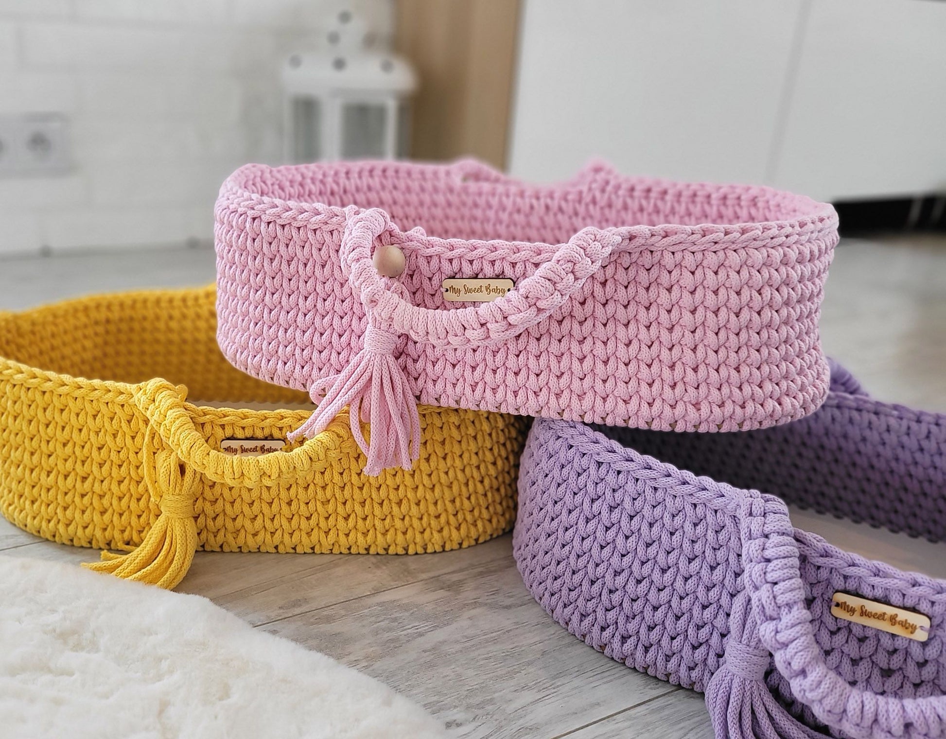 BOHO bomullsdockkorg - dockvagga - handgjord och robust - gul