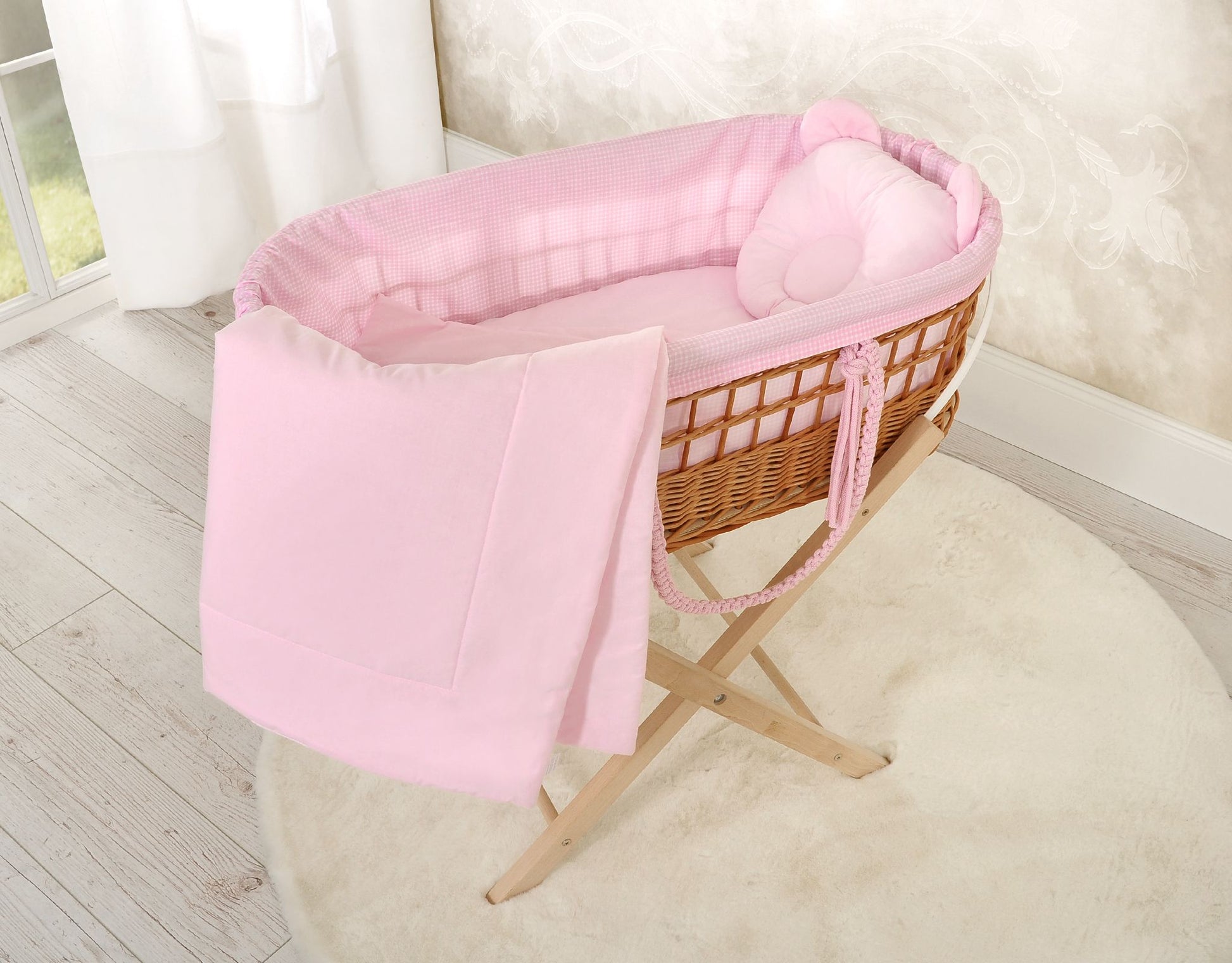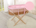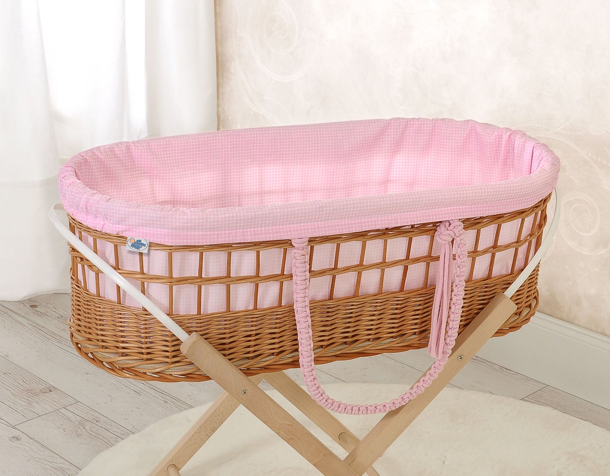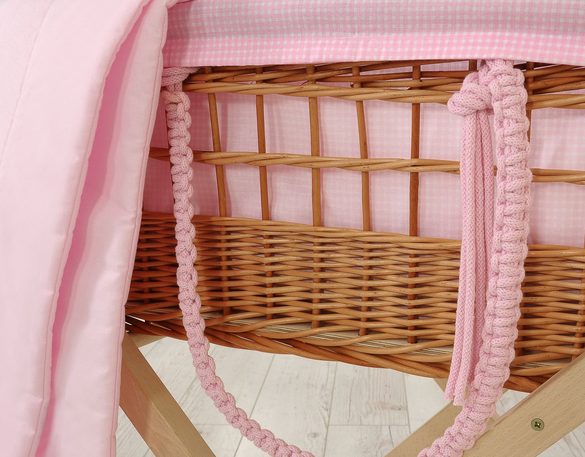 BOHO rottingkorg med stativ och bomullsfoder - rosa rutig