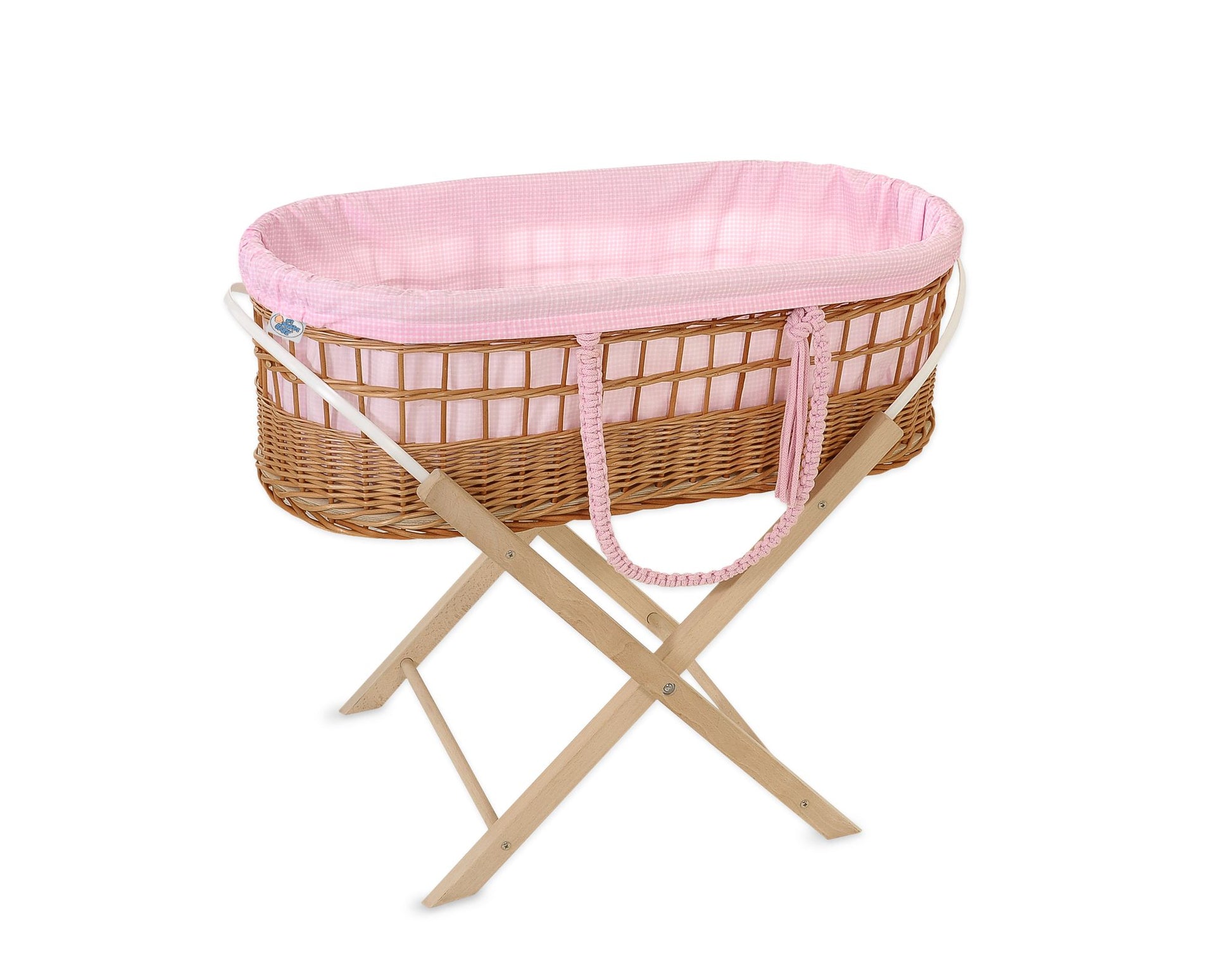 Tack vare de praktiska handtagen är korgen lätt att bära, så att du alltid kan ha din lilla nära. Observera: korgen är lämplig för spädbarn upp till cirka 5-6 månader gamla (max 8 kg). Observera att varje korg är handgjord, så måtten kan variera med upp till 1,5 cm.