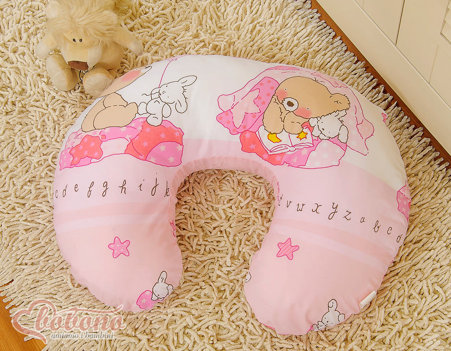 Bekväm amningskudde - Croissantformad med nallebjörn och ballong