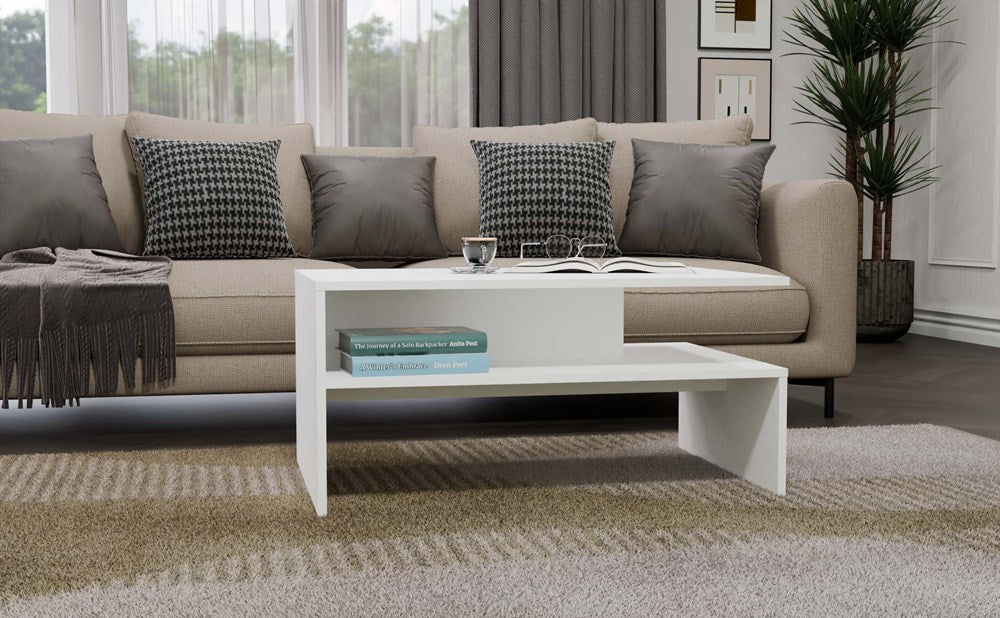 Boston Moderne Koffietafel - Minimalistisch Design | Kleur: Wit | Maat: 90x60x45 cm