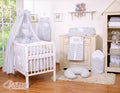 - Stor baldakin för vacker drapering runt en spjälsäng eller barnsäng