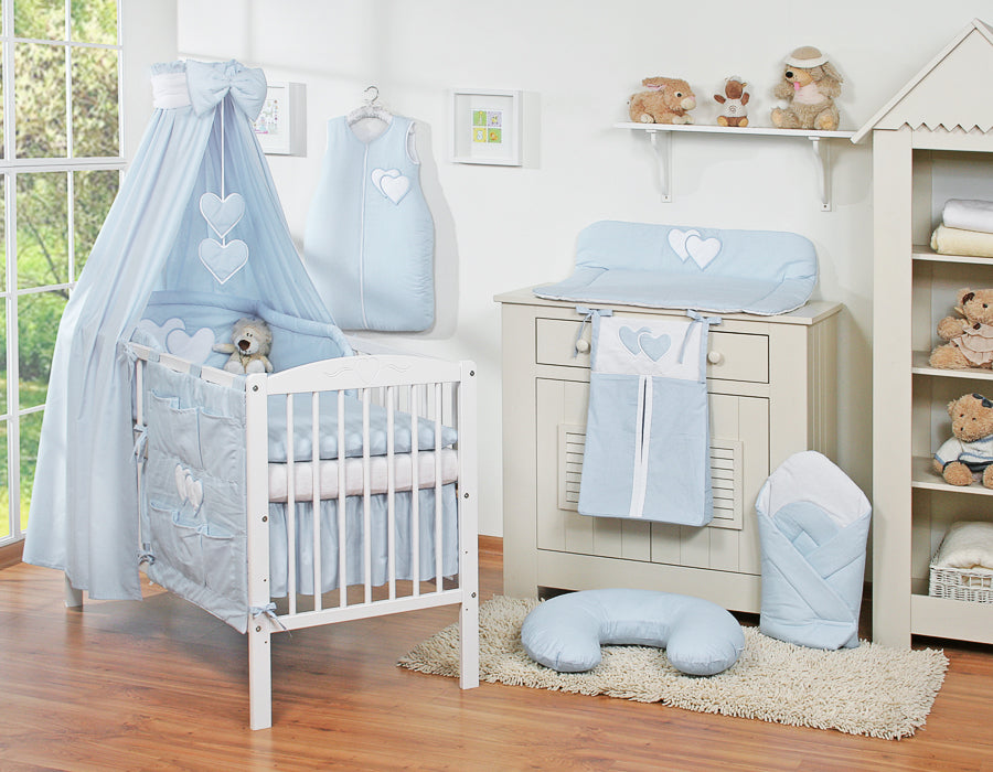 Tygbaldakin, tygbaldakin, skydd mot ljus och drag - Hängande hjärtan blå