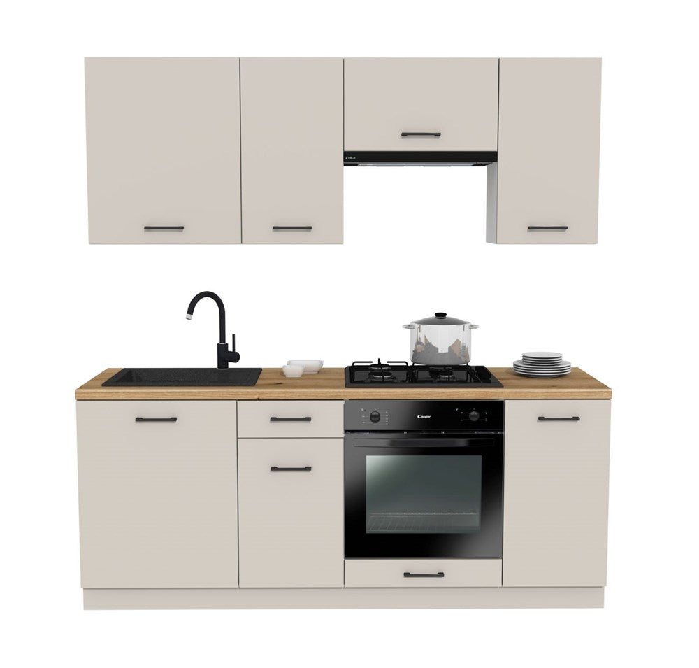 Deze keukenmeubelen zijn ontworpen met aandacht voor efficiënt ruimtegebruik en duurzaamheid. De kasten zijn kras- en hittebestendig, eenvoudig in onderhoud en voorzien van een handig deuropeningssysteem voor maximale toegankelijkheid. Geschikt voor snelle zelfmontage en geleverd met alle montage-accessoires. Ideaal voor kleine huishoudens, studio-appartementen of vakantiewoningen waar elke centimeter telt. Let op: deze set bevat geen huishoudelijke apparaten, gootsteen of kranen.