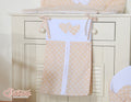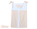 Babyshowergåva i grädde - hängande hjärtan med vita prickar på beige