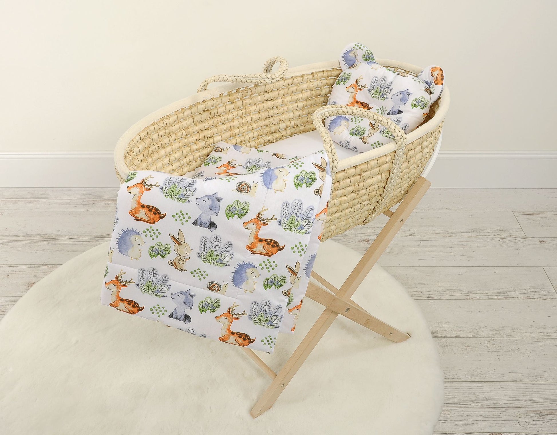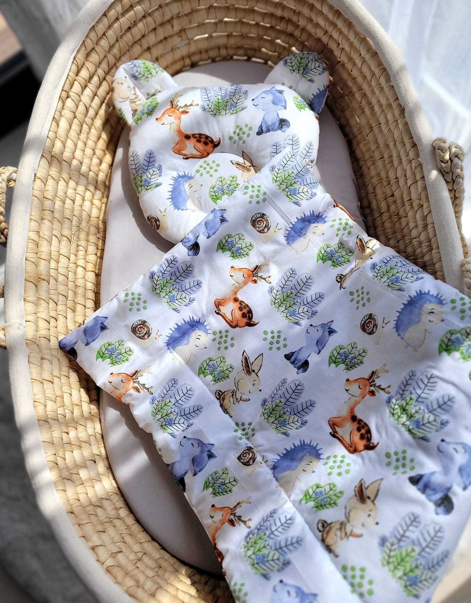 Upptäck Forest Adventure babysängkläderset med fyllning, inklusive en nallebjörnsformad kudde, tillverkade av högsta kvalitet, Oeko-Tex-certifierad bomull. Perfekt för spjälsäng, barnvagn eller spjälsäng, detta set är mjukt, slitstarkt och hudvänligt för din lilla.