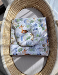 - Filt: 77x77 cm filt med mjuk, luftig silikonfyllning, noggrant quiltad för att behålla formen efter många tvättar. Perfekt för spjälsäng, barnvagn eller som lekmatta.