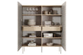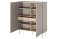 De Desin hoge ladekast biedt slimme opbergruimte dankzij twee verborgen lades met bodemgeleiders, zes ruime planken en twee gesloten kasten. De extra vijfde steunpoot zorgt voor optimale stabiliteit, zelfs bij zware belasting. Dit meubel is ideaal voor het organiseren van uiteenlopende spullen, terwijl de geluidsloze sluiting dagelijkse rust garandeert. Gebruik deze kast als eyecatcher in uw woonkamer, functioneel opbergmeubel in de hal of stijlvolle kledingkast in de slaapkamer. Mits zelf te monteren is het de perfecte balans tussen functionaliteit, moderne esthetiek en comfort.