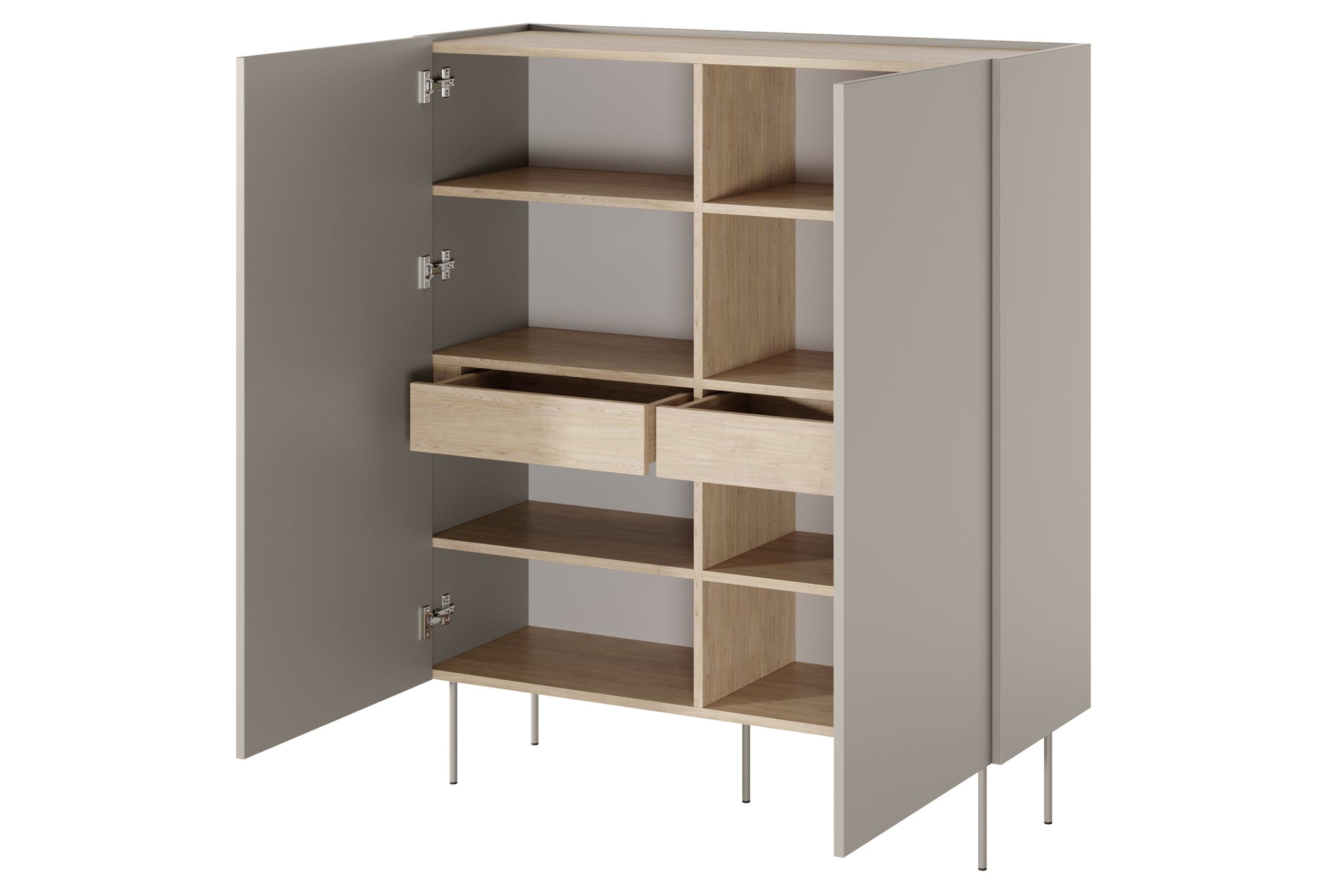 Desin Hoge Ladekast 120 cm met Verborgen Lades en Metalen Poten - Kasjmier/Nagano Eik