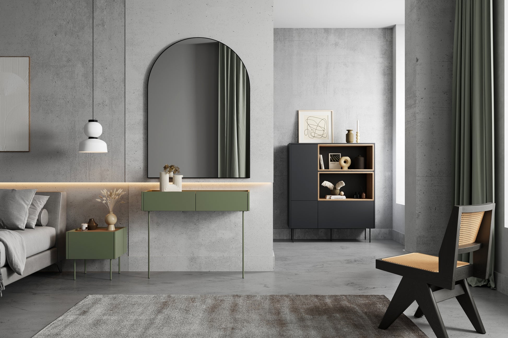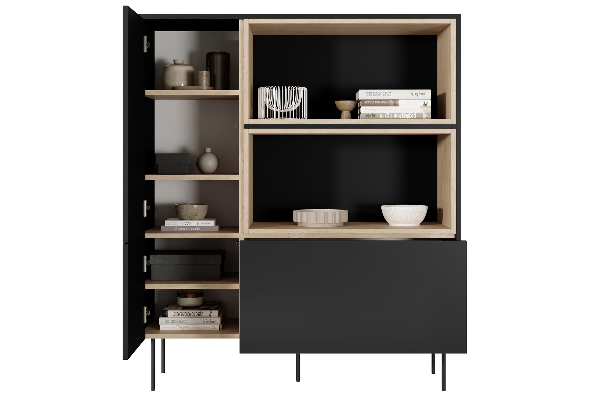 Desin hoge ladekast met 1 lade en 2 kasten - Stijlvol & functioneel | Mat zwart / Nagano eik