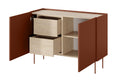Desin ladekast 120 cm met 2 verborgen lades en metalen poten | Kleur: Keramiek Rood & Nagano Eik