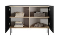 Desin ladekast 120 cm met metalen poten - Modern mat zwart en Nagano eik | Kleur: Mat zwart/Nagano
