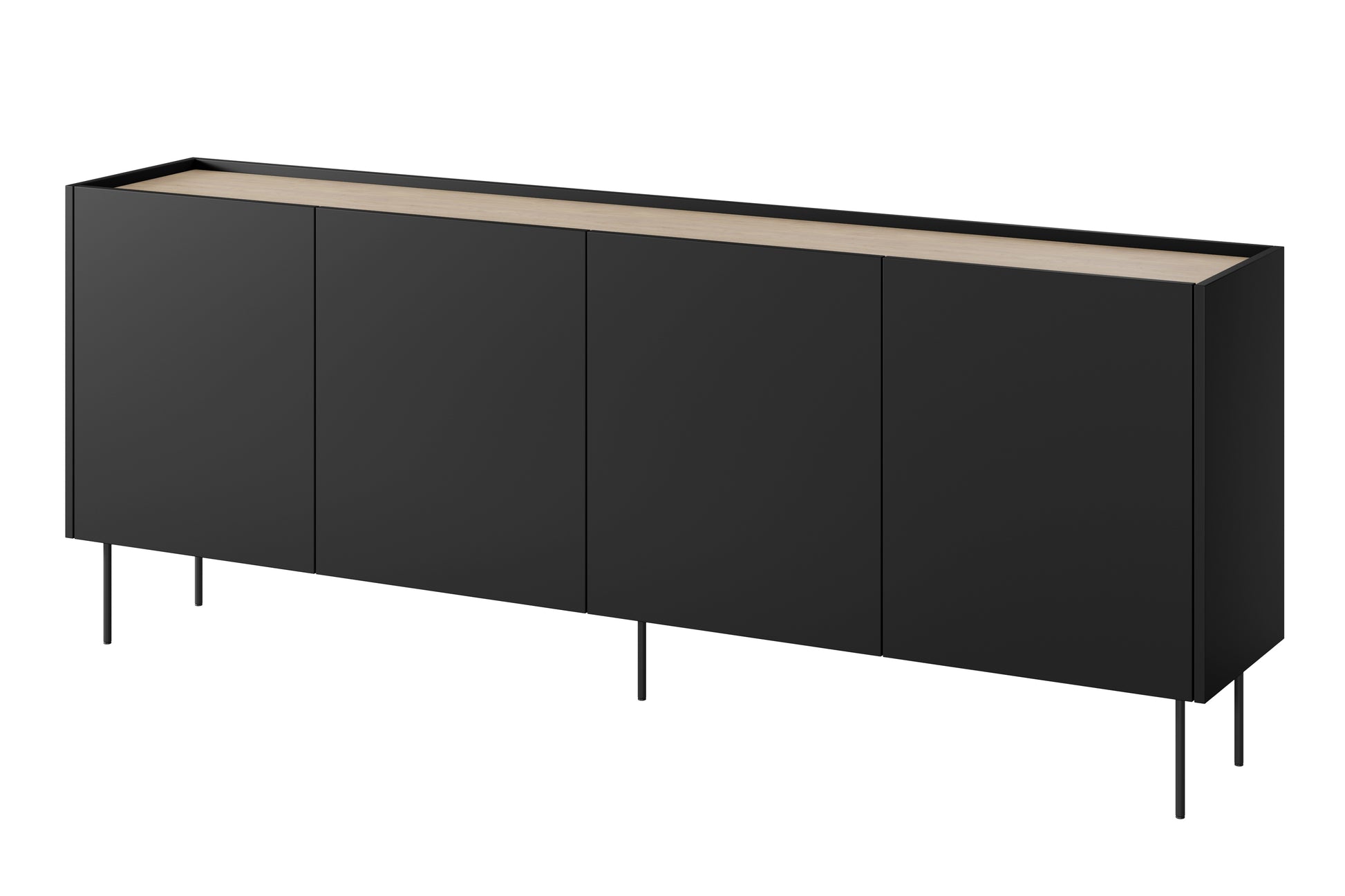 Desin ladekast 220 cm - Mat zwart met Nagano eik, verborgen lades, soft-close | Kleur: Mat zwart /