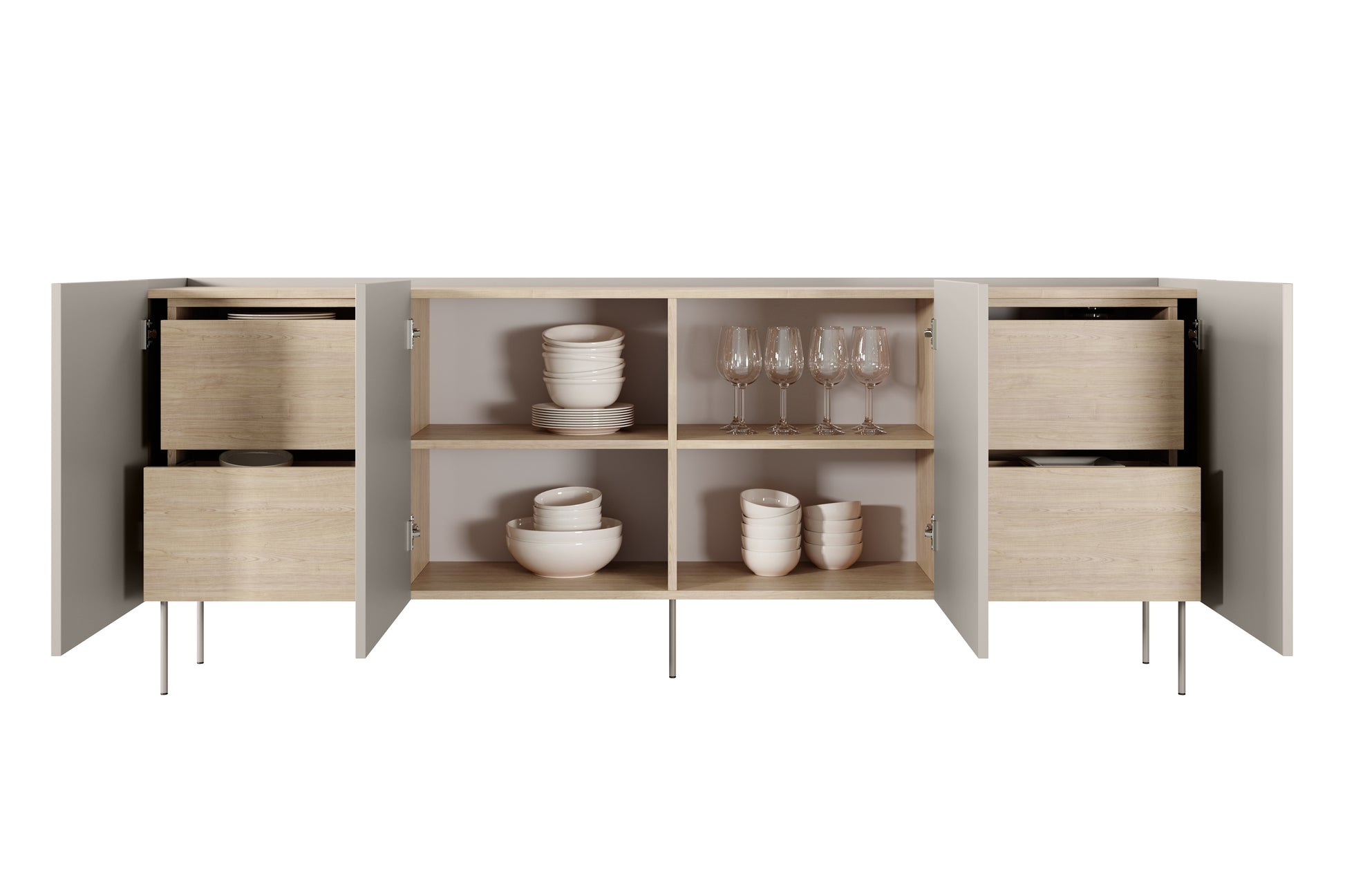 Desin ladekast 220 cm met 4 verborgen lades - Modern design | Kleur: Kasjmier / Nagano eik