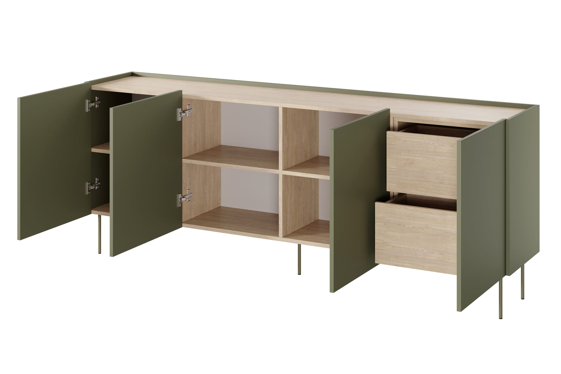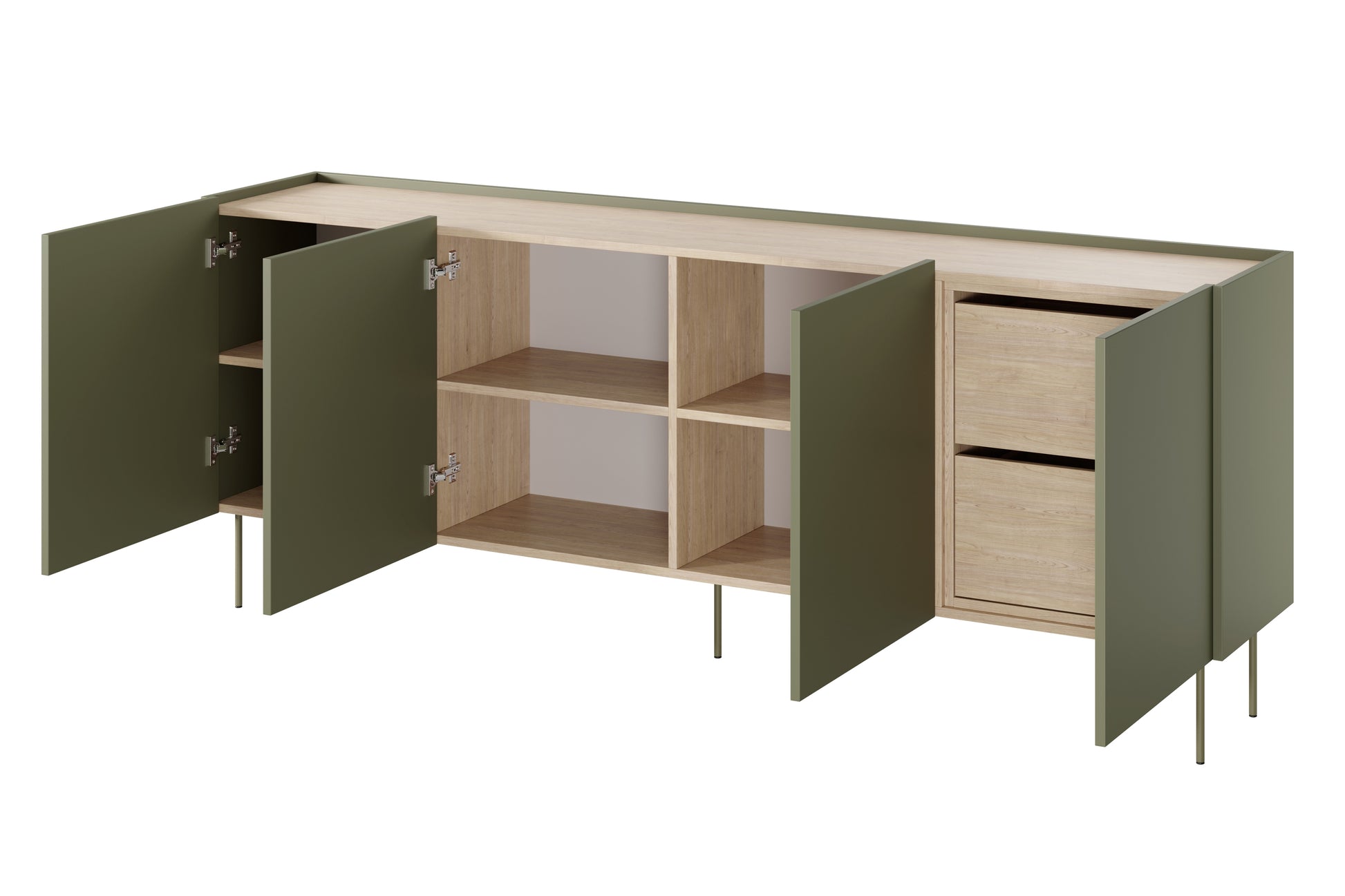 Desin Ladekast 220 cm – Olijf/Nagano Eik met Verborgen Lades en Metalen Poten