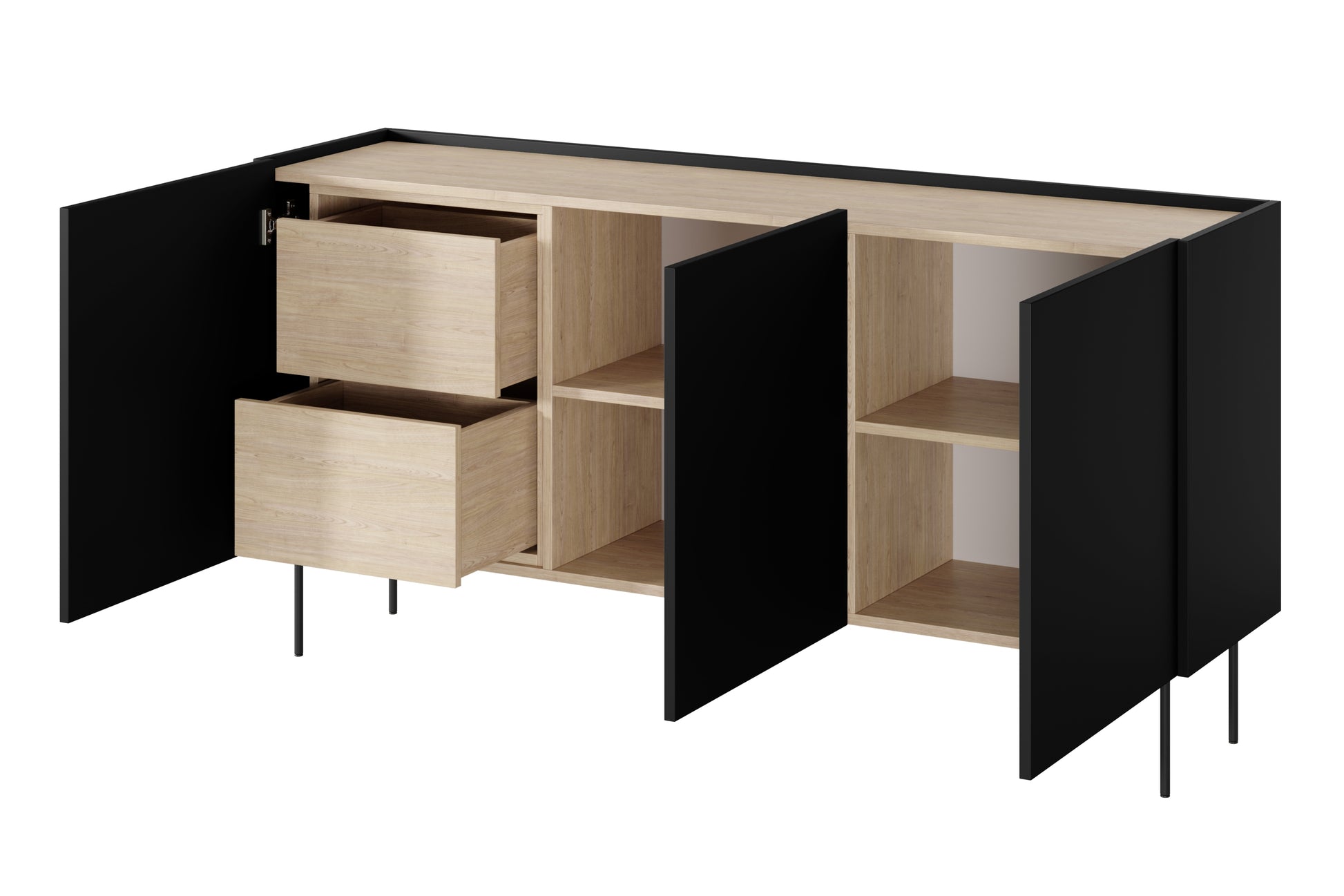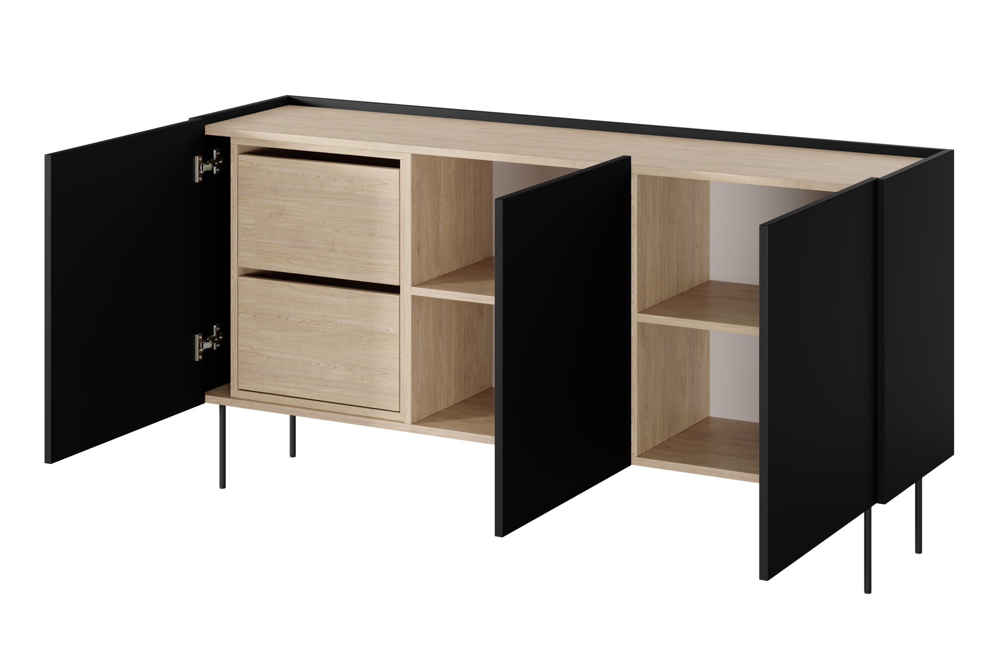 Desin ladekast met 2 verborgen lades en 3 deuren - Opbergkast | Mat Zwart / Nagano Eik | 170x85x40