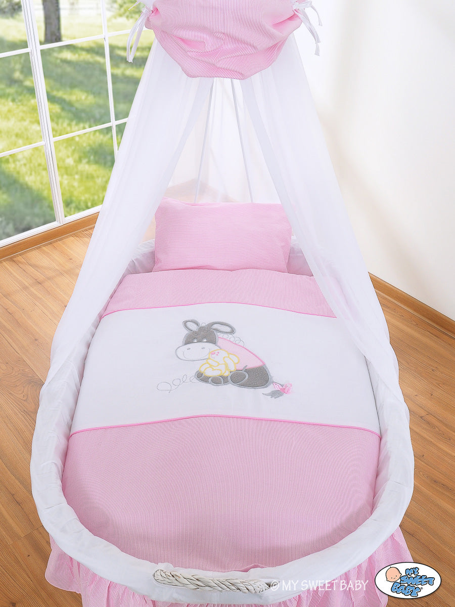 Donkey Luca Rosa rottingkorg - Rymlig spjälsäng med justerbart handtag och antiallergiskt sängkläder