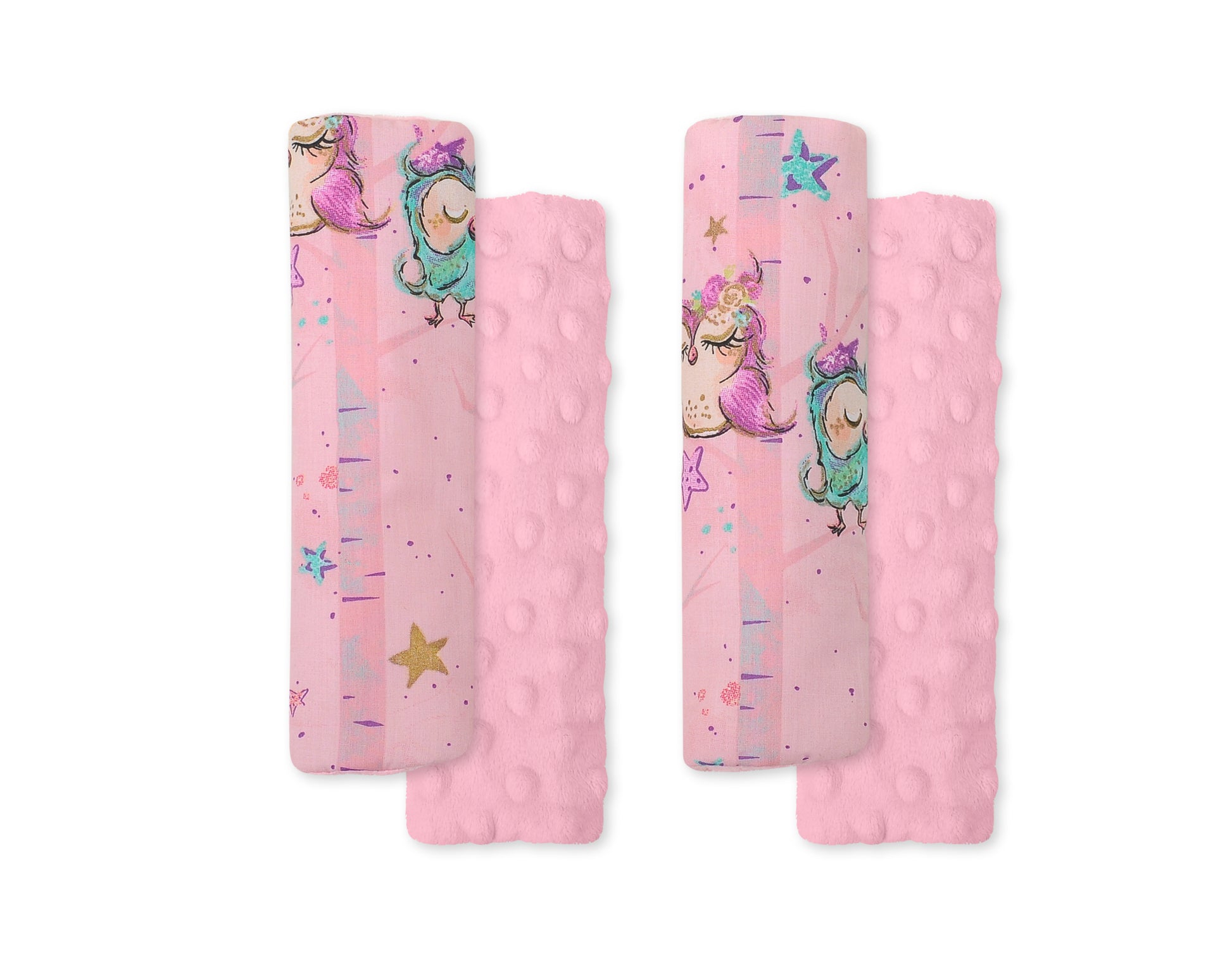 BOBONO dubbla mjuka säkerhetsbälteskuddar - Ugglor rosa-mint