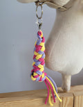 I paketet: 1 x dubbelflätad repfäste för hobbyhäst med karbinhake