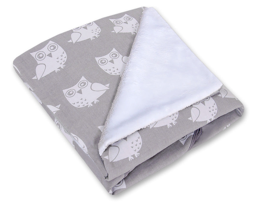 Stor dubbelsidig bilbarnstolsfilt - Ugglor grå