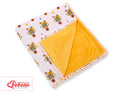 Dubbelsidig minkyfilt med pom-poms - gula zebror
