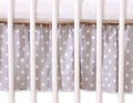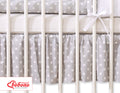 Ge din spjälsäng ett speciellt och elegant utseende med dessa Dust Ruffle-volanger i Hanging Hearts-designen, med vita prickar på en grå bakgrund. Denna praktiska dammremsa täcker utrymmet mellan lådan och botten av spjälsängen och madrassen, vilket skapar ett snyggt och prydligt utseende.