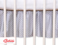 Dust Ruffle - Maskeringsvolanger 120x60cm - Hängande hjärtan vita med vita prickar på grått