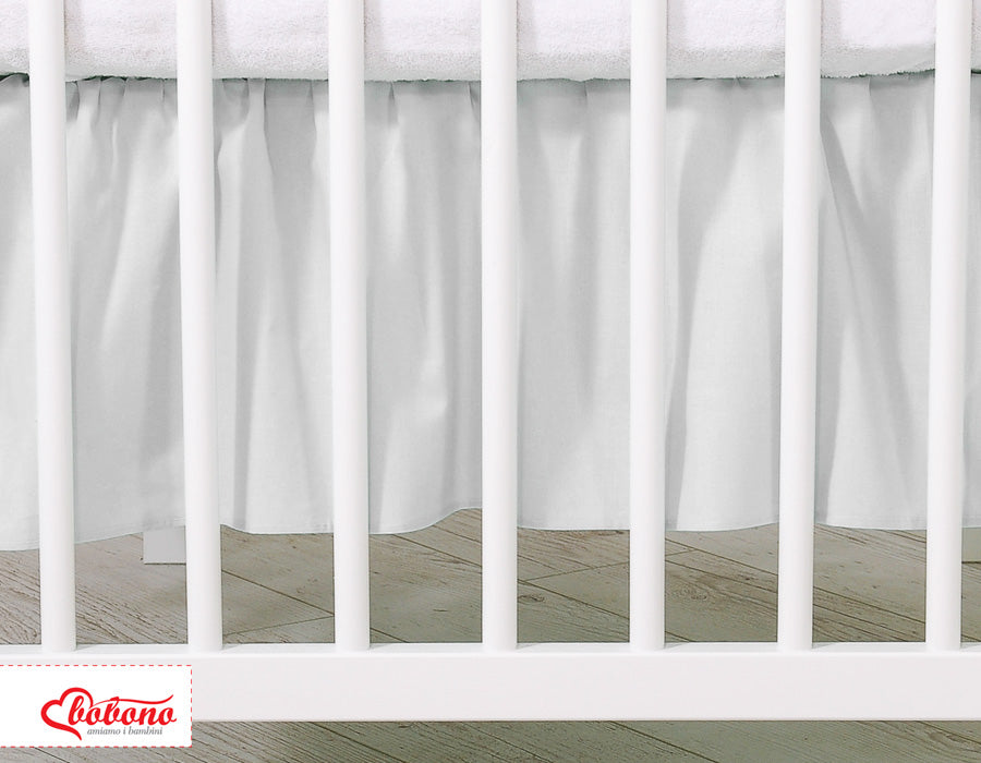 Speciell dekoration för alla spjälsängar. Denna dammvolang på 60x120 cm är tillverkad av 100 % bomull och täcker utrymmet mellan lådan och botten av spjälsängen och madrassen.