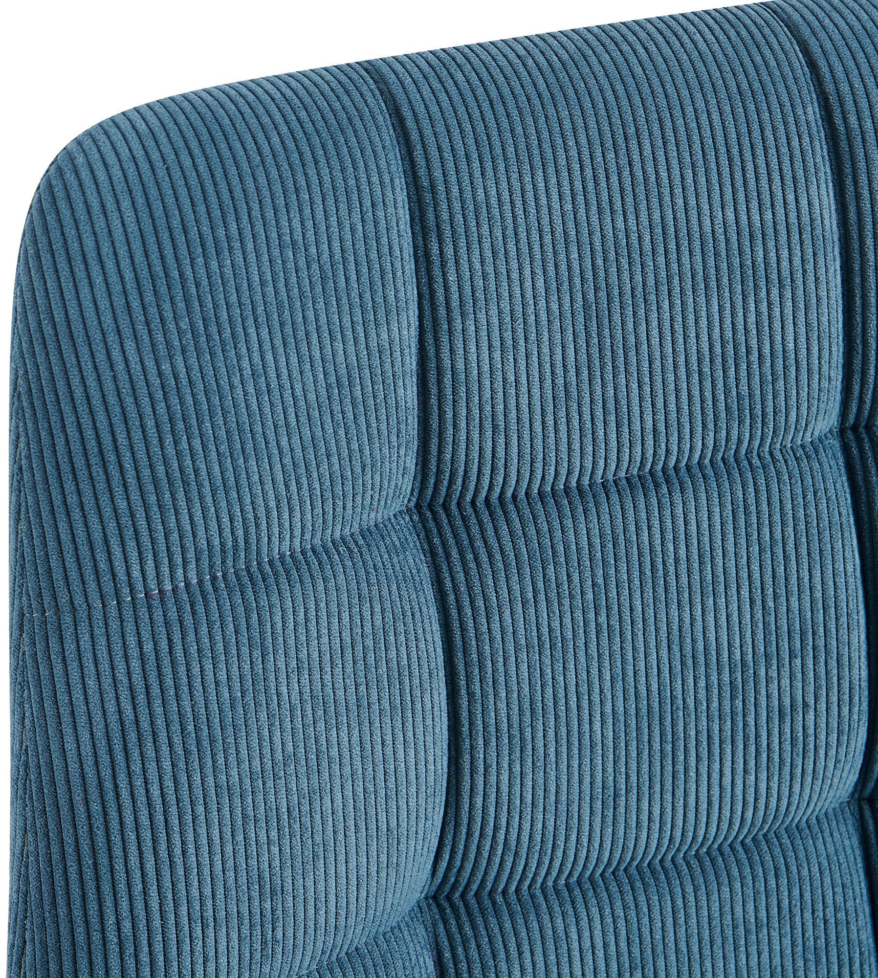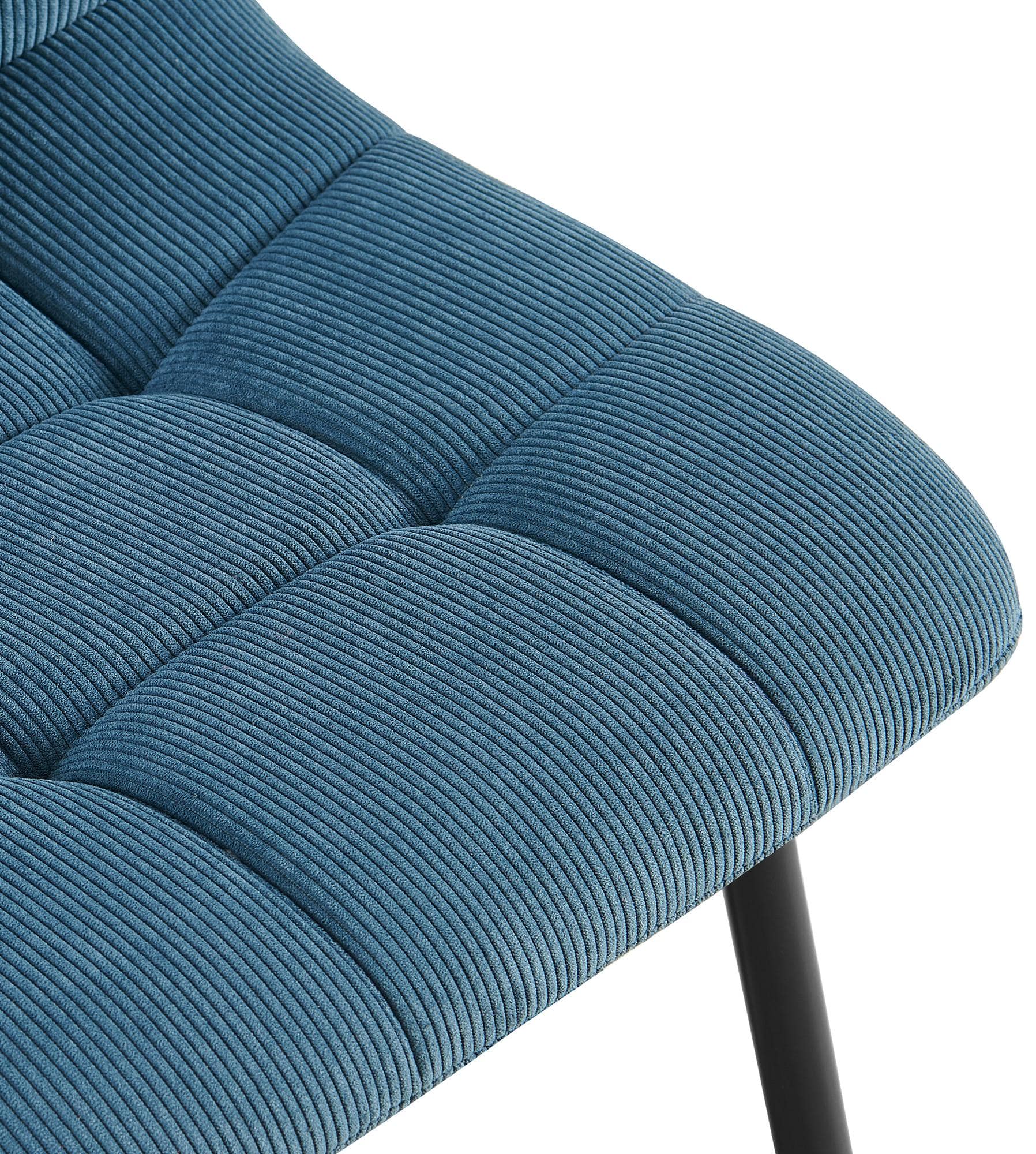 Sittkomforten förstärks av den mjuka klädseln i både sits och ryggstöd, klädda i snyggt manchestertyg. De eleganta sömmarna bidrar till ett raffinerat utseende.