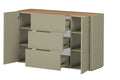 Elivo ladekast 150 cm met 3 laden en deuren - Eucalyptusgroen & Baltische duineik