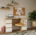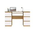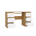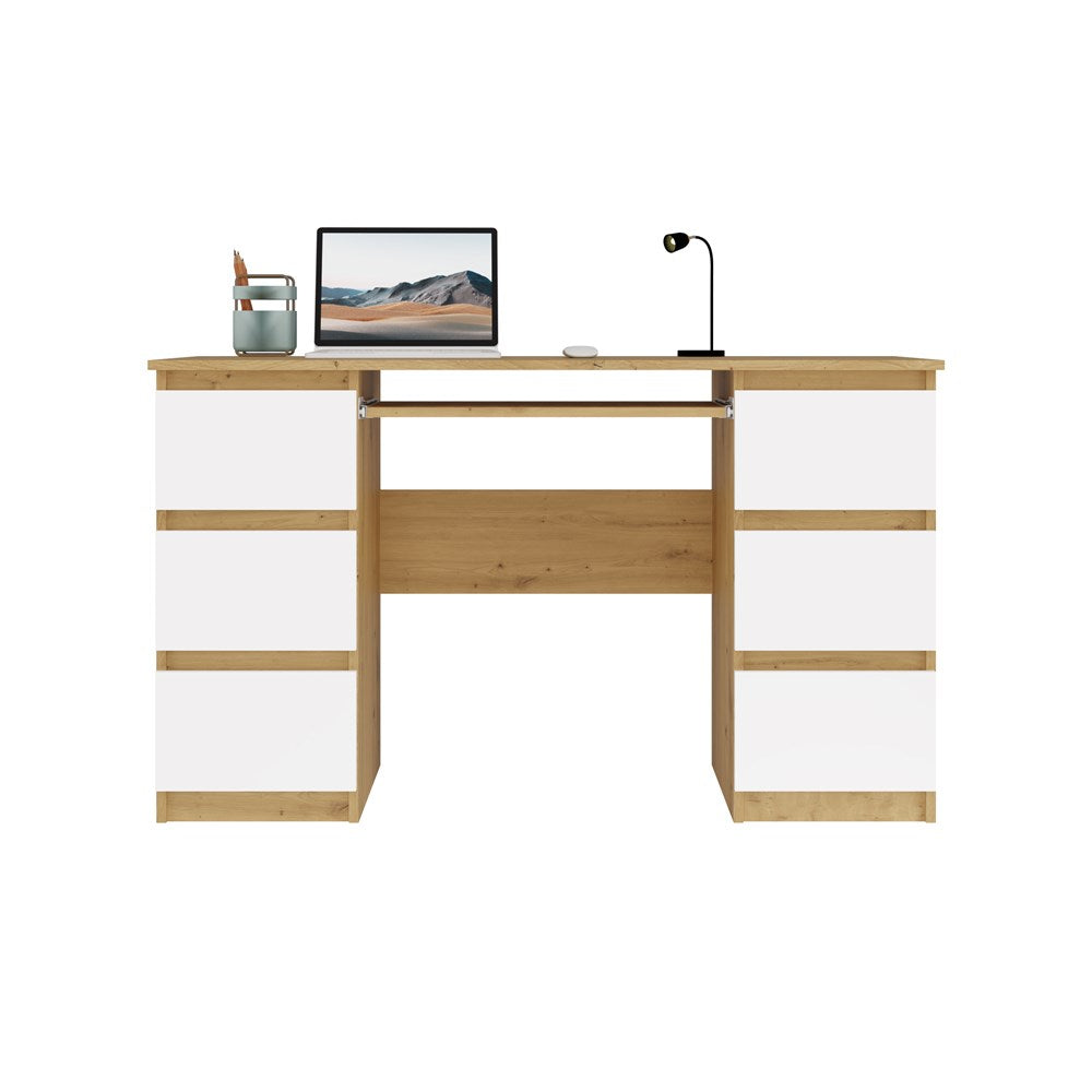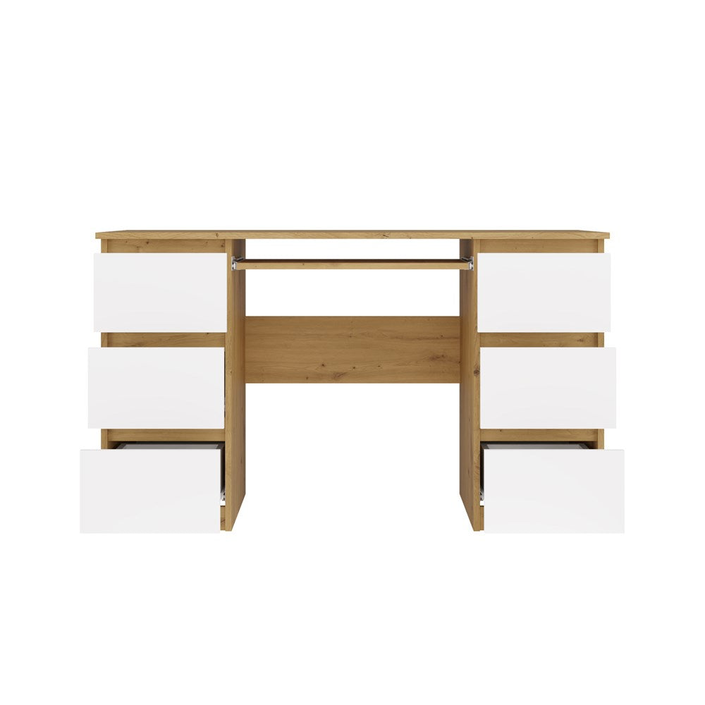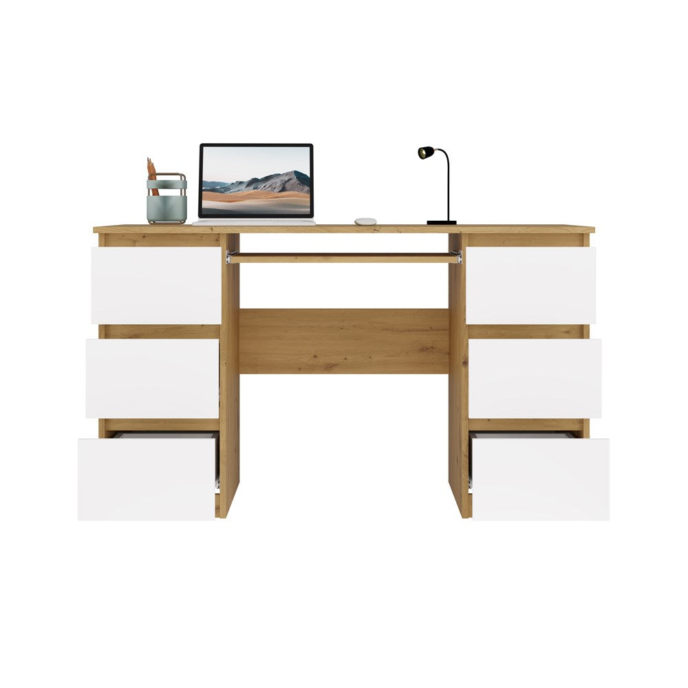 Functioneel bureau met 6 lades en toetsenbordlade - Model CUBA | Artisan Eik & Wit | 130x51x76 cm