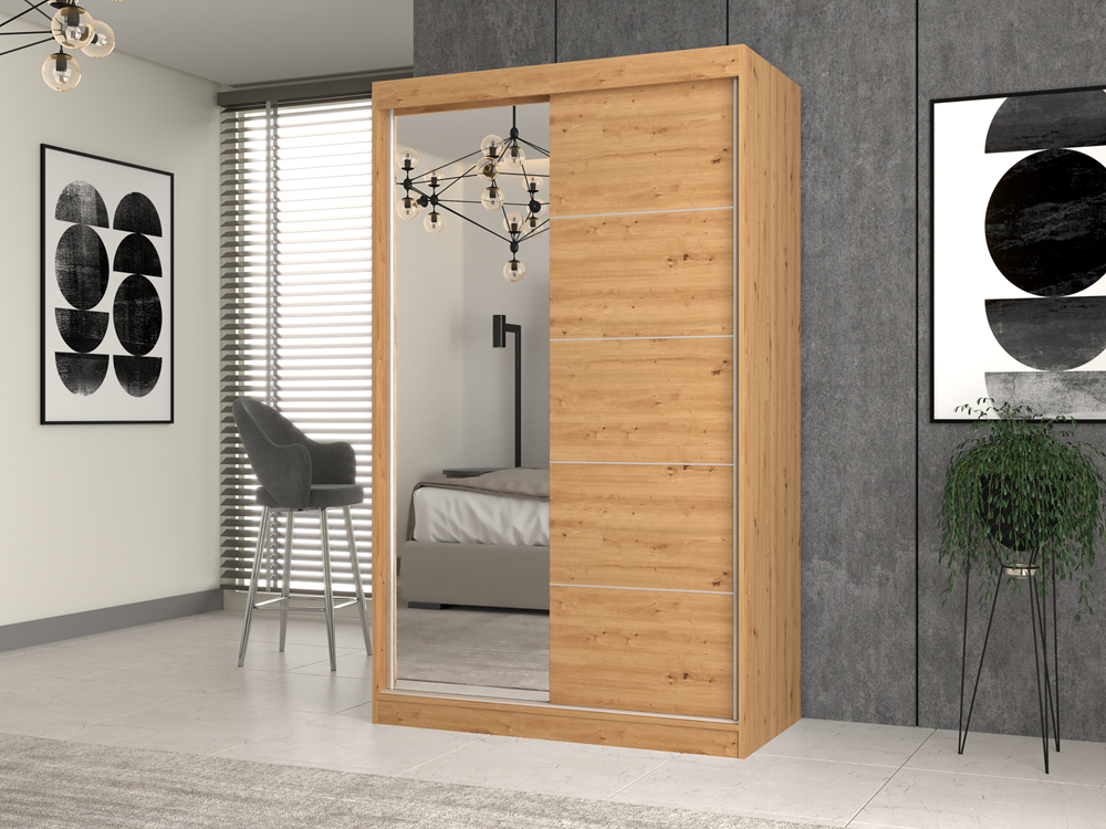 Garderobe met schuifdeuren IGA - Ambachtelijk & Artisan Eik, 1 Spiegel | Kleur: Eik