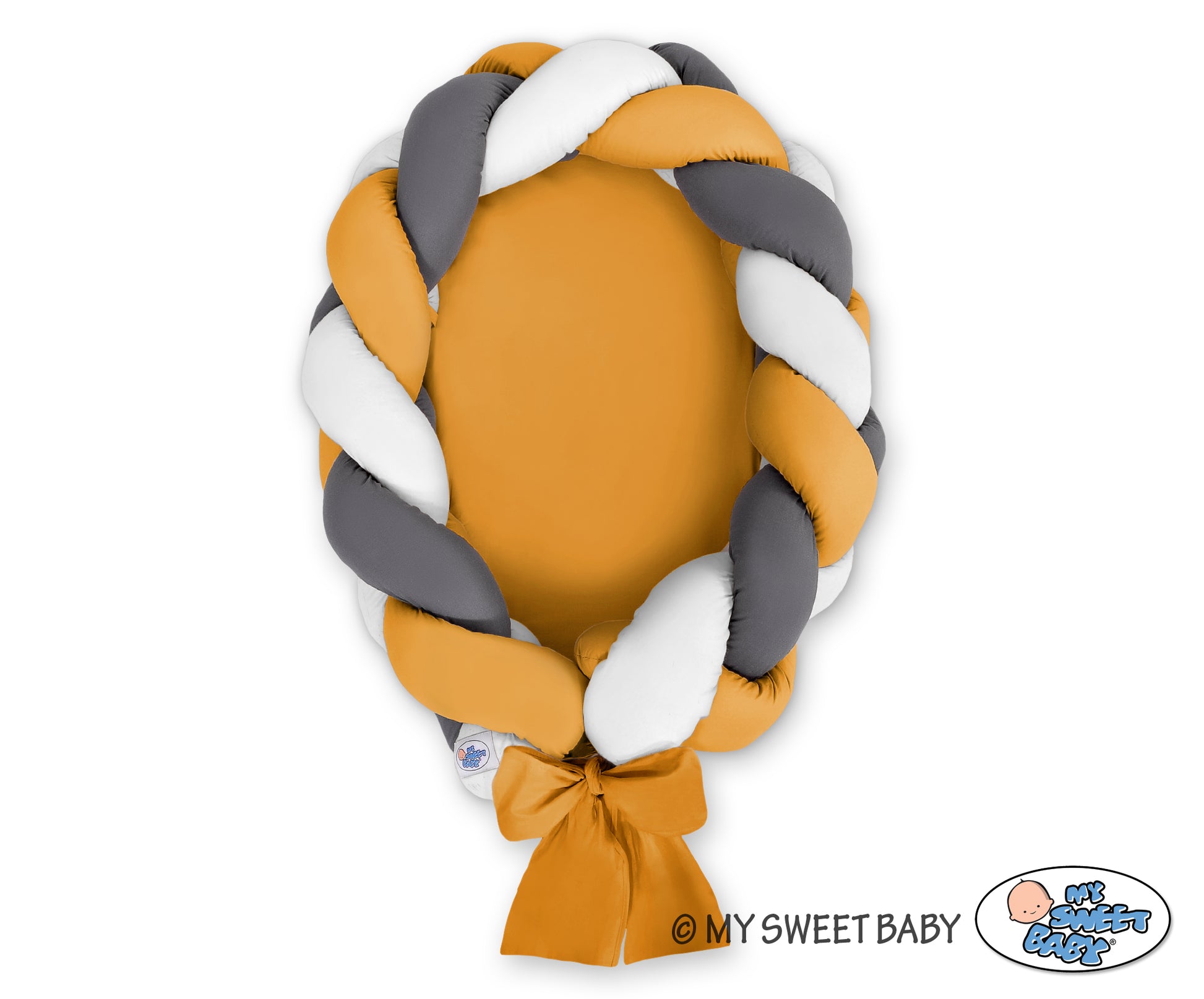 Flätat babynest 2-i-1 - vit-honungsgul-antracit