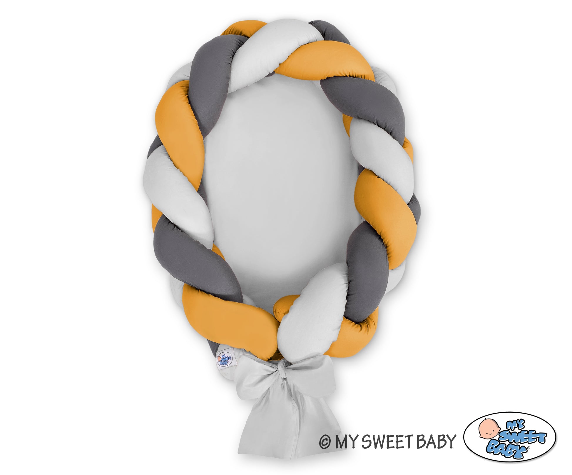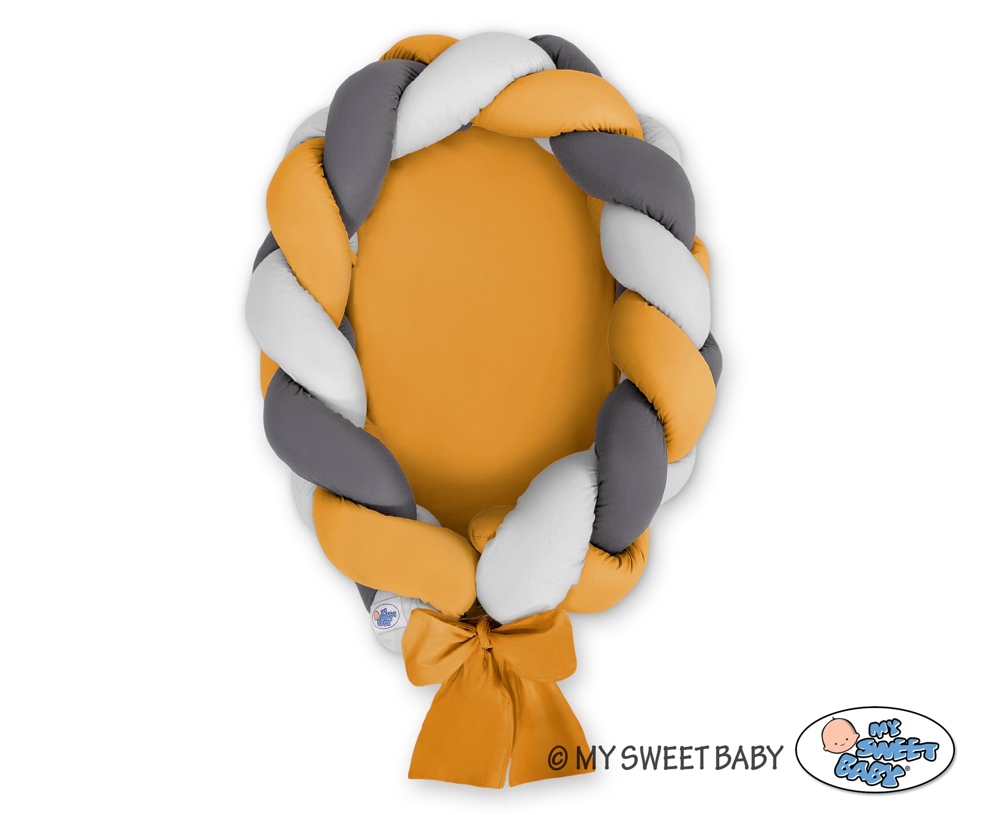 Flätat babynest 2-i-1 - grå-honungsgul-antracit