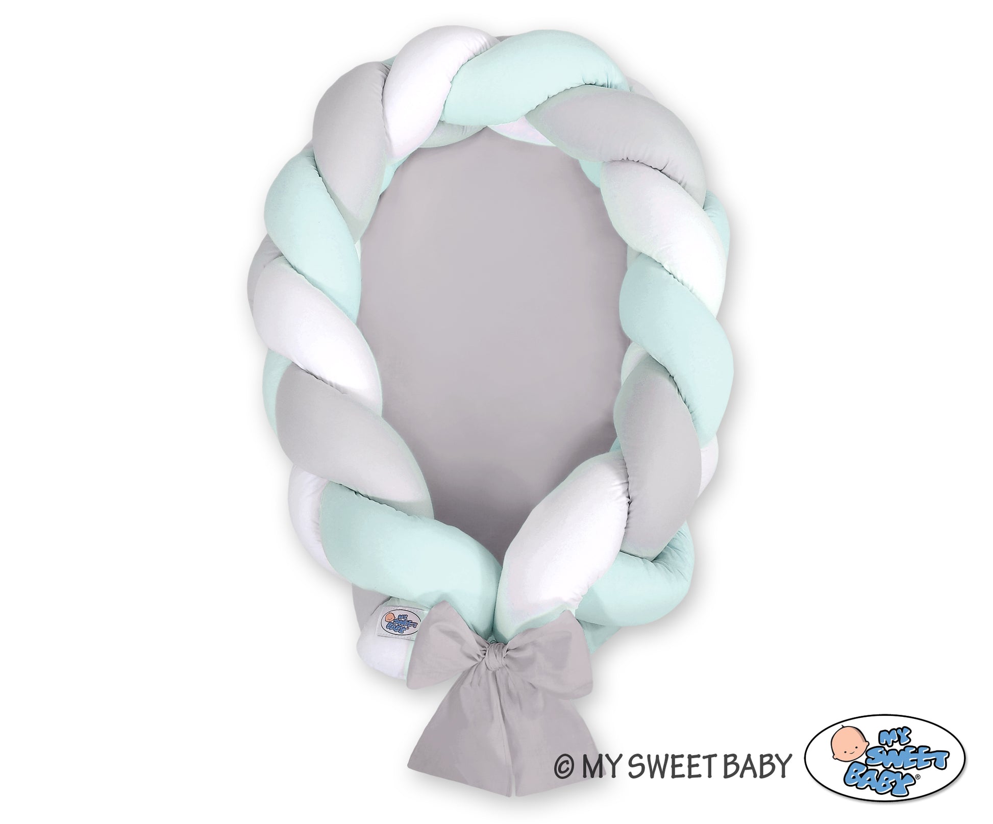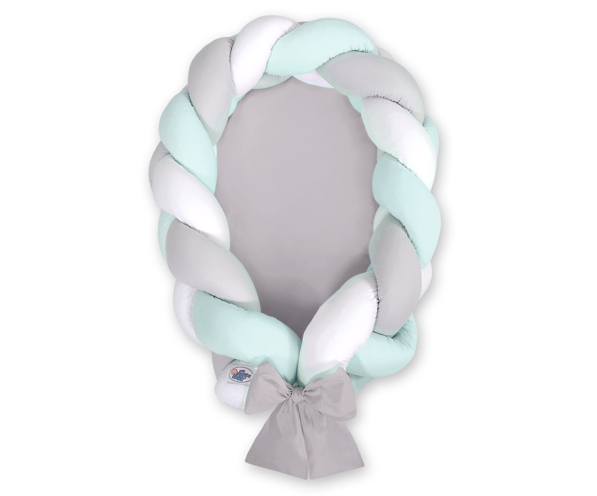 Flätat babynest - kokong - 2-i-1 multifunktionellt, säkert och tryggt, vit-grå-mint