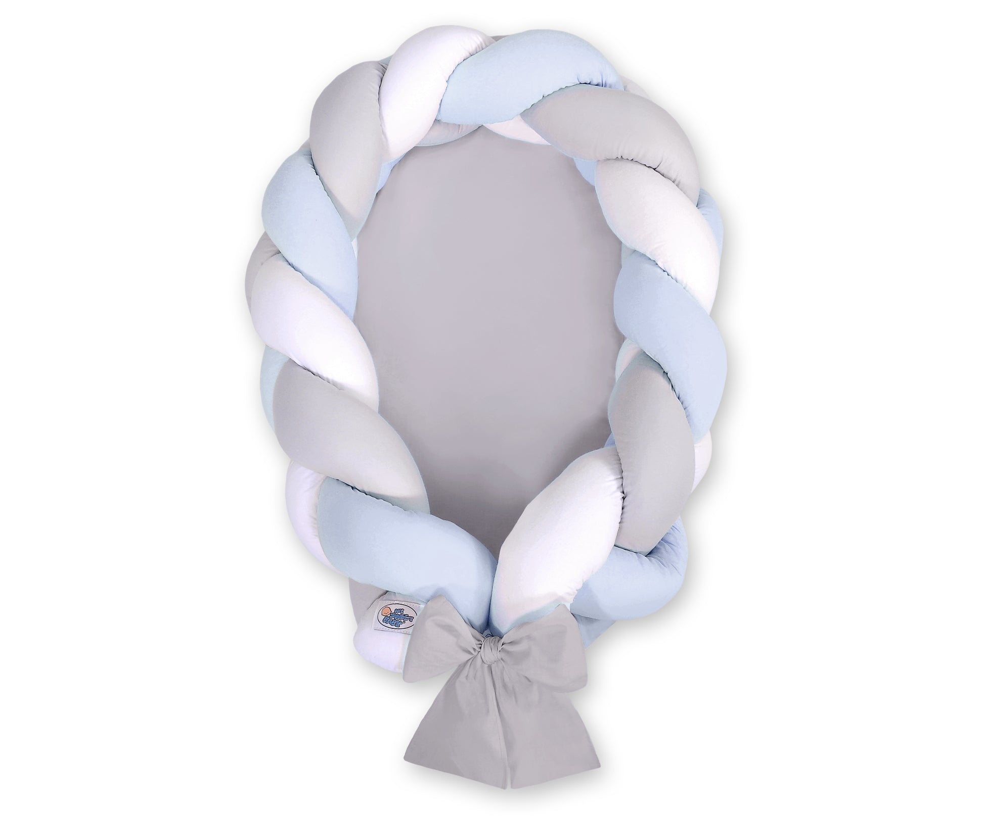 En multifunktionell vävd babynestkokong som enkelt förvandlas till ett kantskydd för spjälsängen. Detta babynest är en idealisk lösning från ditt barns första månader. Det erbjuder en mysig och trygg sovplats som är mindre och mysigare än en vanlig spjälsäng, vilket gör att ditt barn känner sig tryggare.