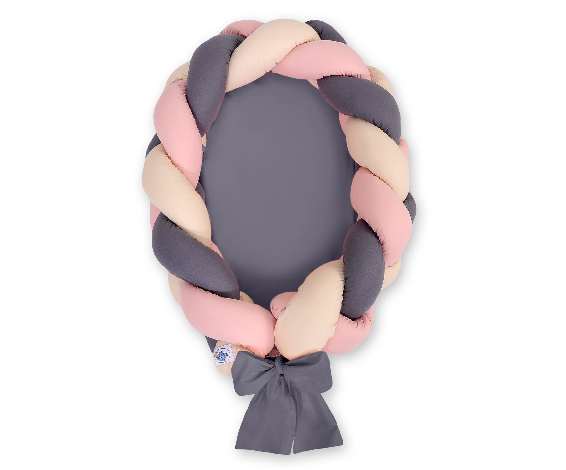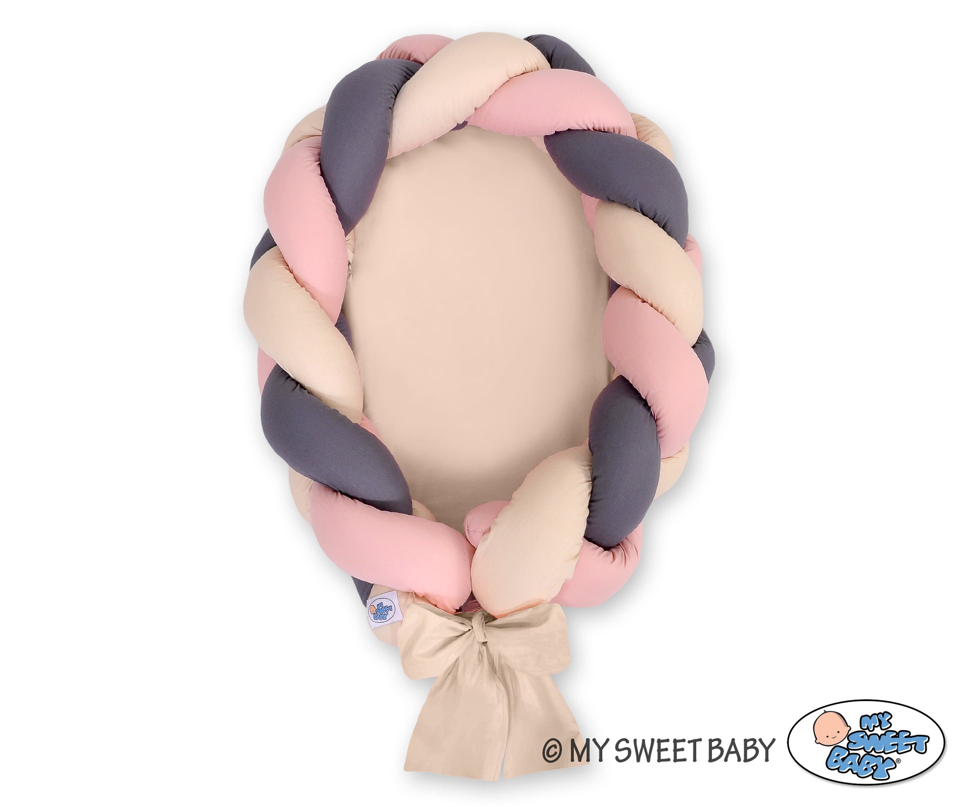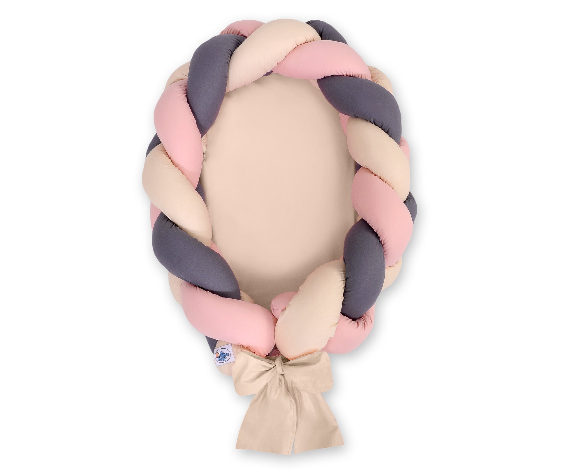 Flätat babynest, kokong, multifunktionell 2-i-1-design för säker sömn och spjälsängsskydd