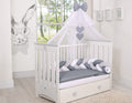 En vacker och mycket mjuk vävd sängskyddsskydd tillverkad av 100 % bomull. Detta skyddsskydd fästs enkelt på spjälsängens galler.