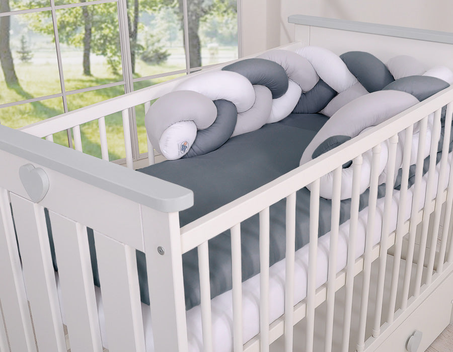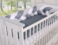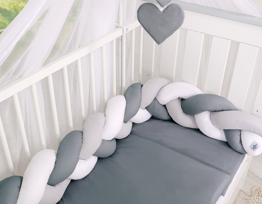 Flätad sängskyddsstötfångare - knutkant - bättre ventilation, 100% bomull, vit-grå-antracit