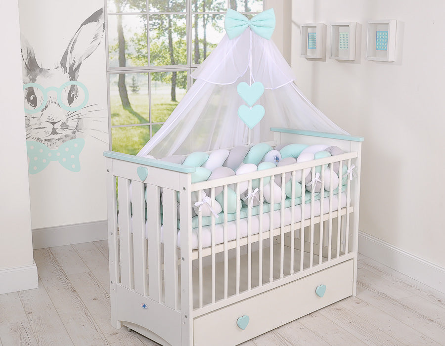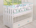 Denna vackra, extra mjuka vävda spjälskydd är tillverkad av 100 % bomull och erbjuder optimalt skydd för din lilla. De medföljande bomullsrosetterna gör den enkel att fästa på spjälskyddet.