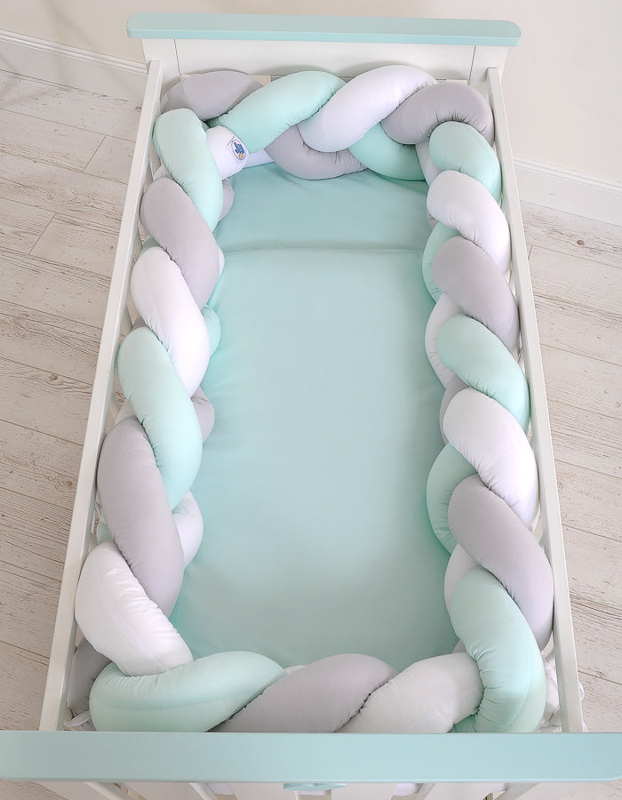 XXL flätad spjälsängsskydd - spjälsängsskydd - optimalt skydd och ventilation för barnet
