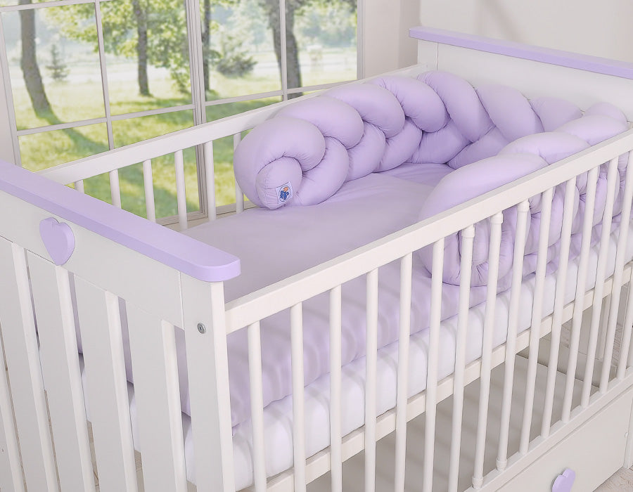 Flätad knappstötfångare - spjälsängsskydd - extra mjuk bomull, bättre ventilation - lavendel