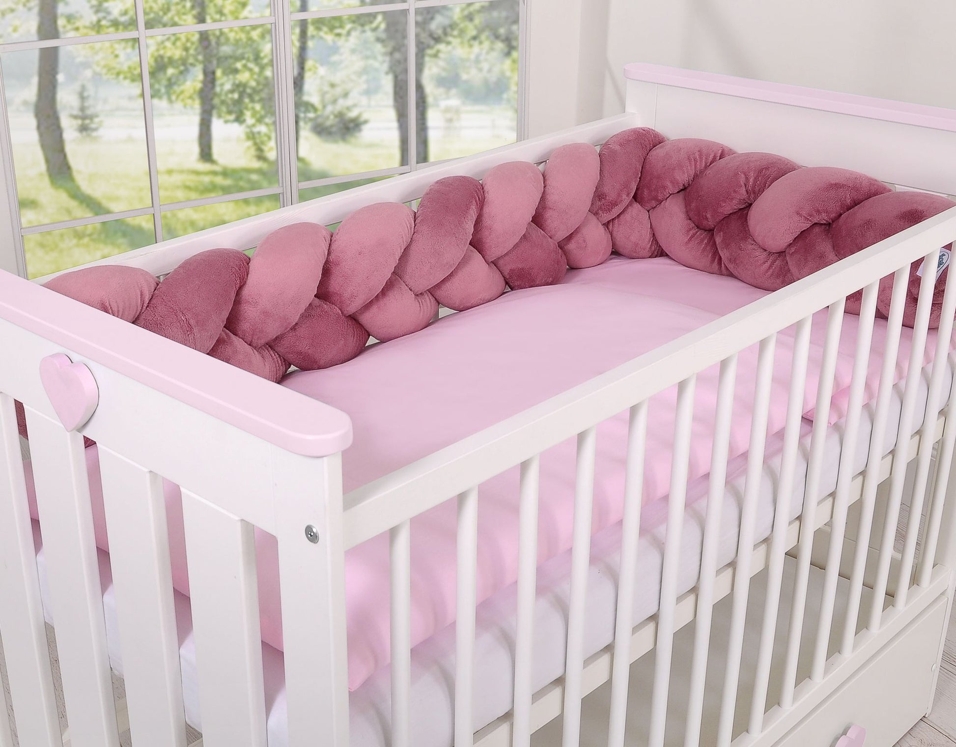 Flätad Knutstötfångare Minky 180 cm - Pastellrosa