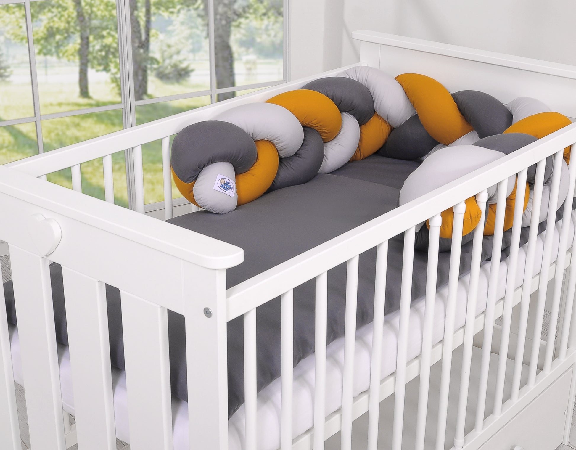 Flätad spjälsängsskydd - spjälsängsskydd - 100 % bomull, skyddar barnet mot stötar