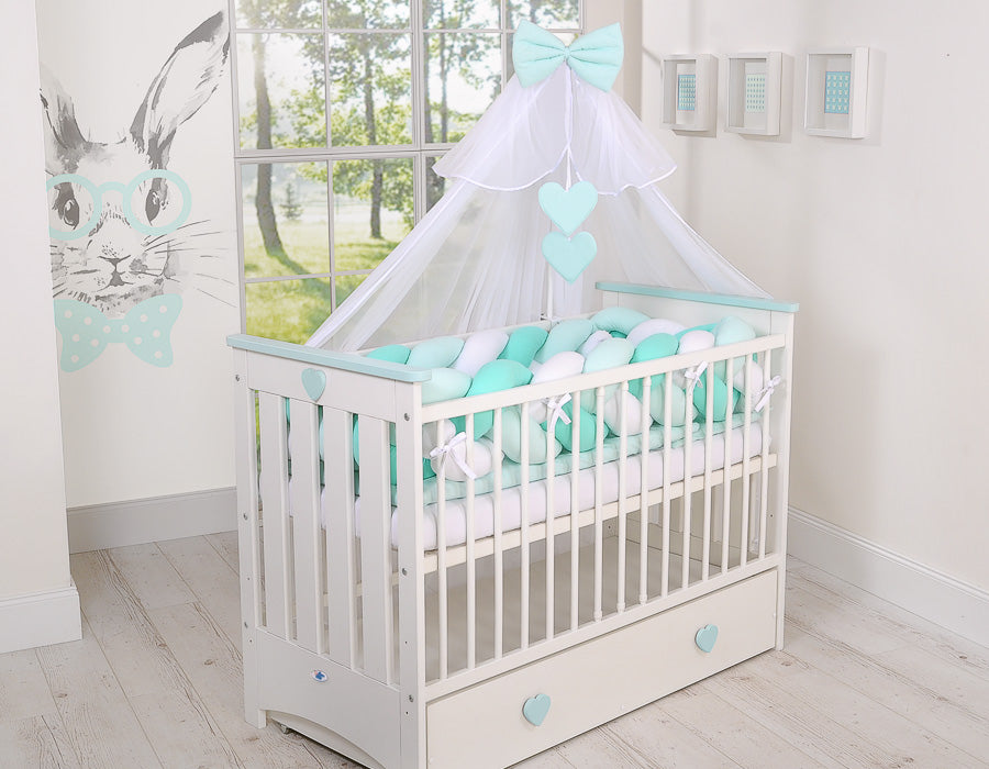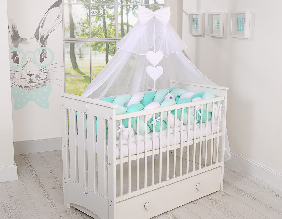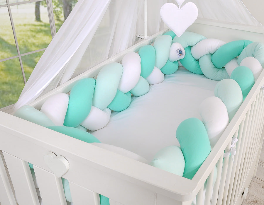 Flätad spjälskydd, XXL sänggrind, stötskydd, extra mjuk bomull