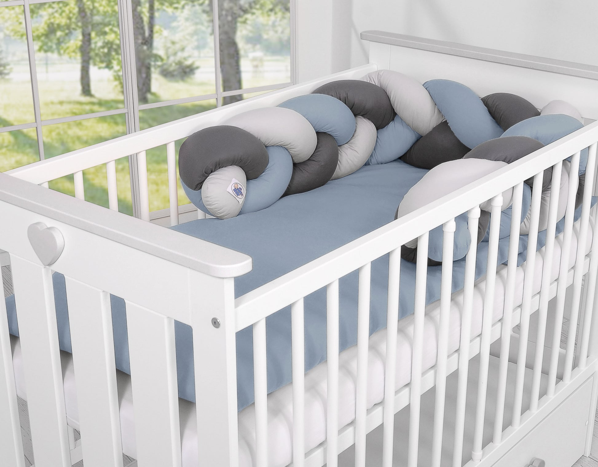 Flätad spjälsängsskydd - knutskydd - 100% bomull, extra mjuk, bättre luftcirkulation
